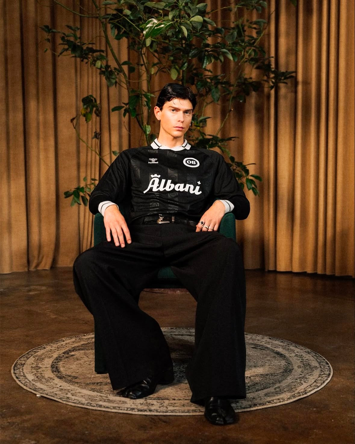 Jacob, som har designet fodboldtrøjen, ønskede at skabe en unik trøje, der forener sport og mode. Trøjen fungerer både som en fodboldtrøje og et fashion statement, så den kan bruges på stadion såvel som i hverdagen. Ideen var at tænke ud af boksen og tilføre et personligt twist – med tone-i-tone striber, hvor logoet diskret er placeret, samt en markant krave, der giver trøjen et sofistikeret præg inspireret af de gamle 90'er-trøjer. Valget af sort var nemt, da det giver brugeren mulighed for selv at sætte sit præg og udtrykke sin personlige stil. Trøjen repræsenterer en unik fusion af fodbold og mode, og vi er utrolig stolte af resultatet.