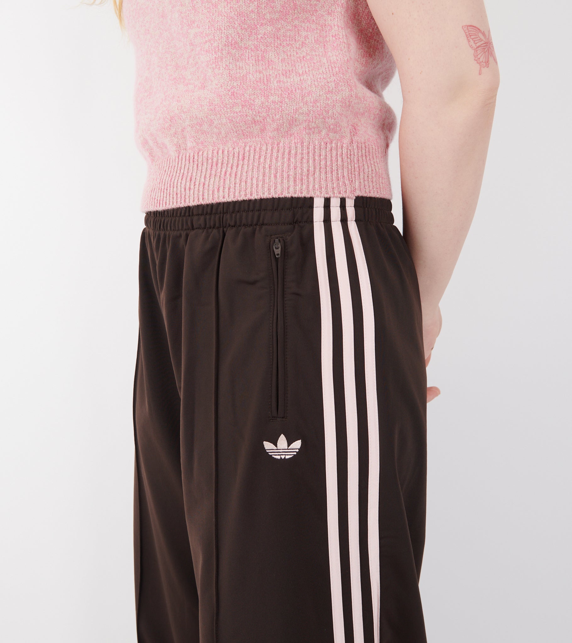 Brune trackpants med lyserøde detaljer fra Adidas.