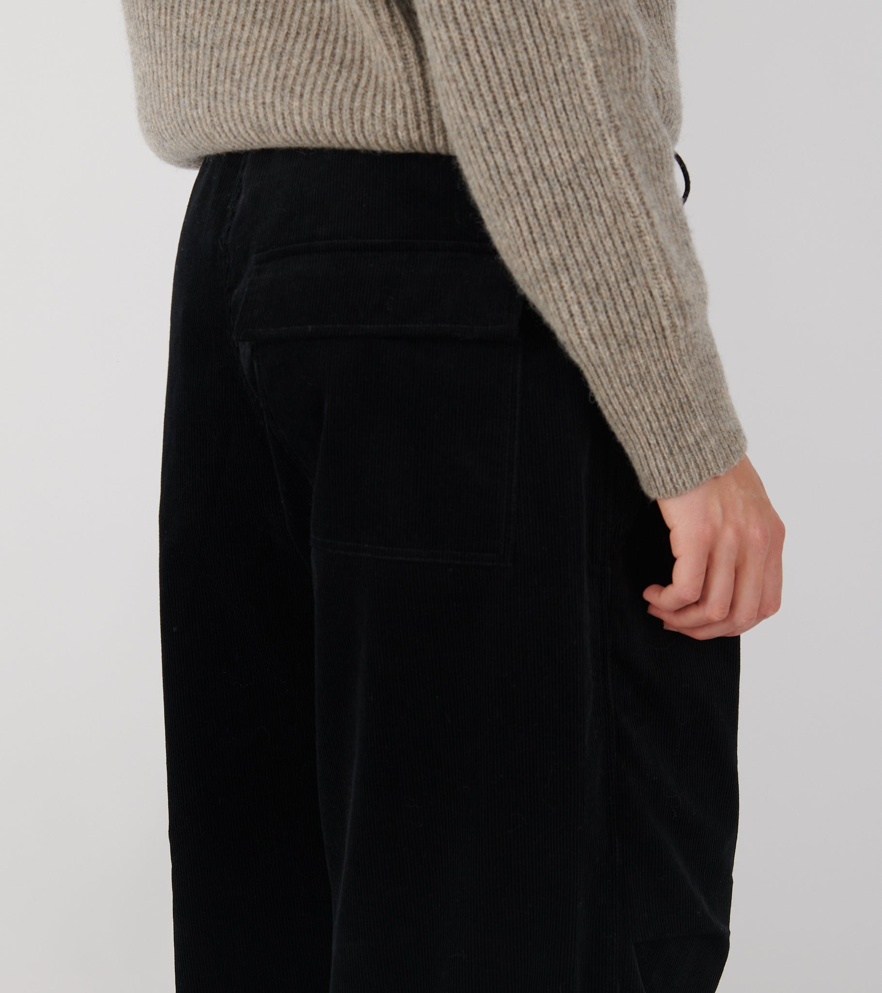 Sorte bukser i baby-bomuldsfløjl fra AF Agger.