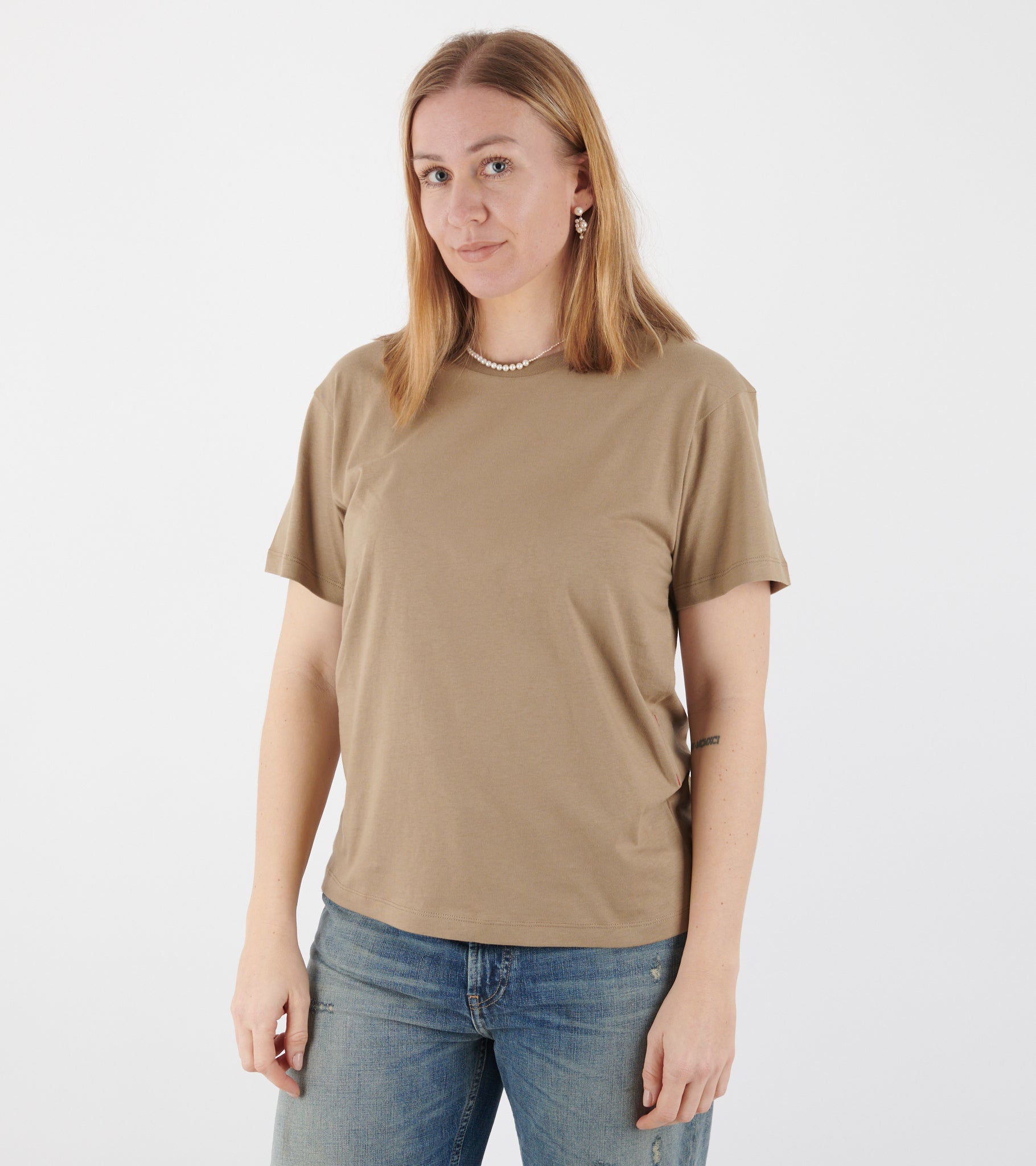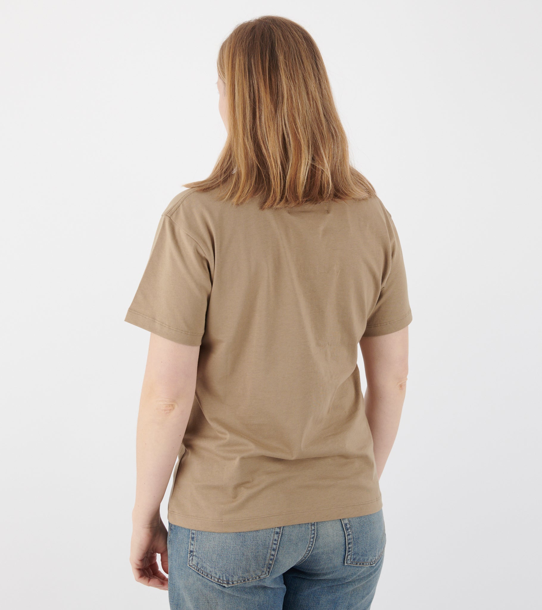 Mørk beige t-shirt fra Aiayu. Classic Circular Tee er unisex og fremstillet i en blanding af økologisk og genanvendt bomuldsjersey. Den er fremstillet i Portugal ved brug af restmaterialer fra Aiayu's egen bomuldsproduktion. T-shirten har en rund hals og to små røde syninger i siden - hvilket er kendetegnet t-shirtsene fra Aiayu's 'Shared' kollektion. Classic Circular Tee har en klassisk unisex pasform, inspireret af klassiske herre t-shirts.