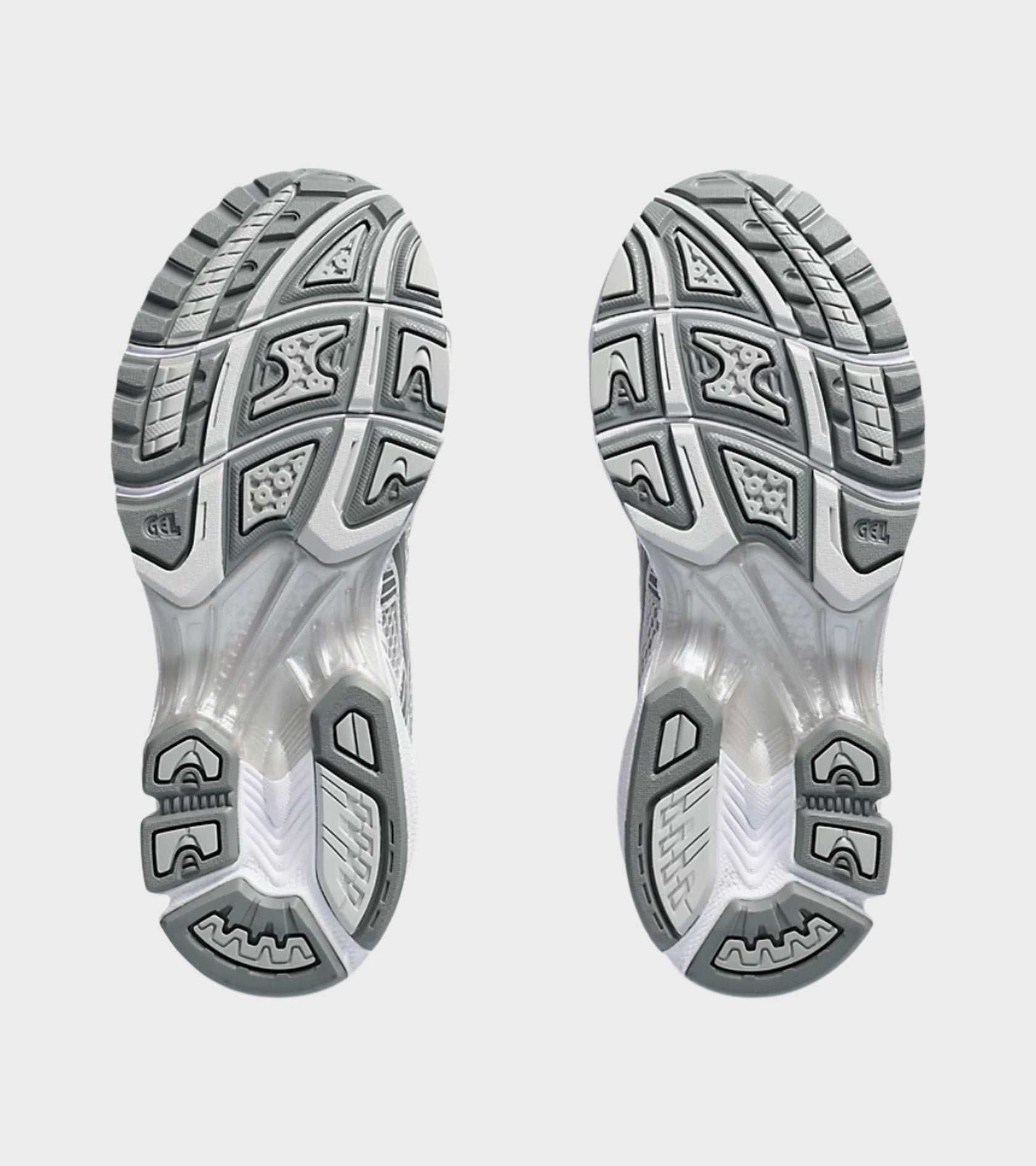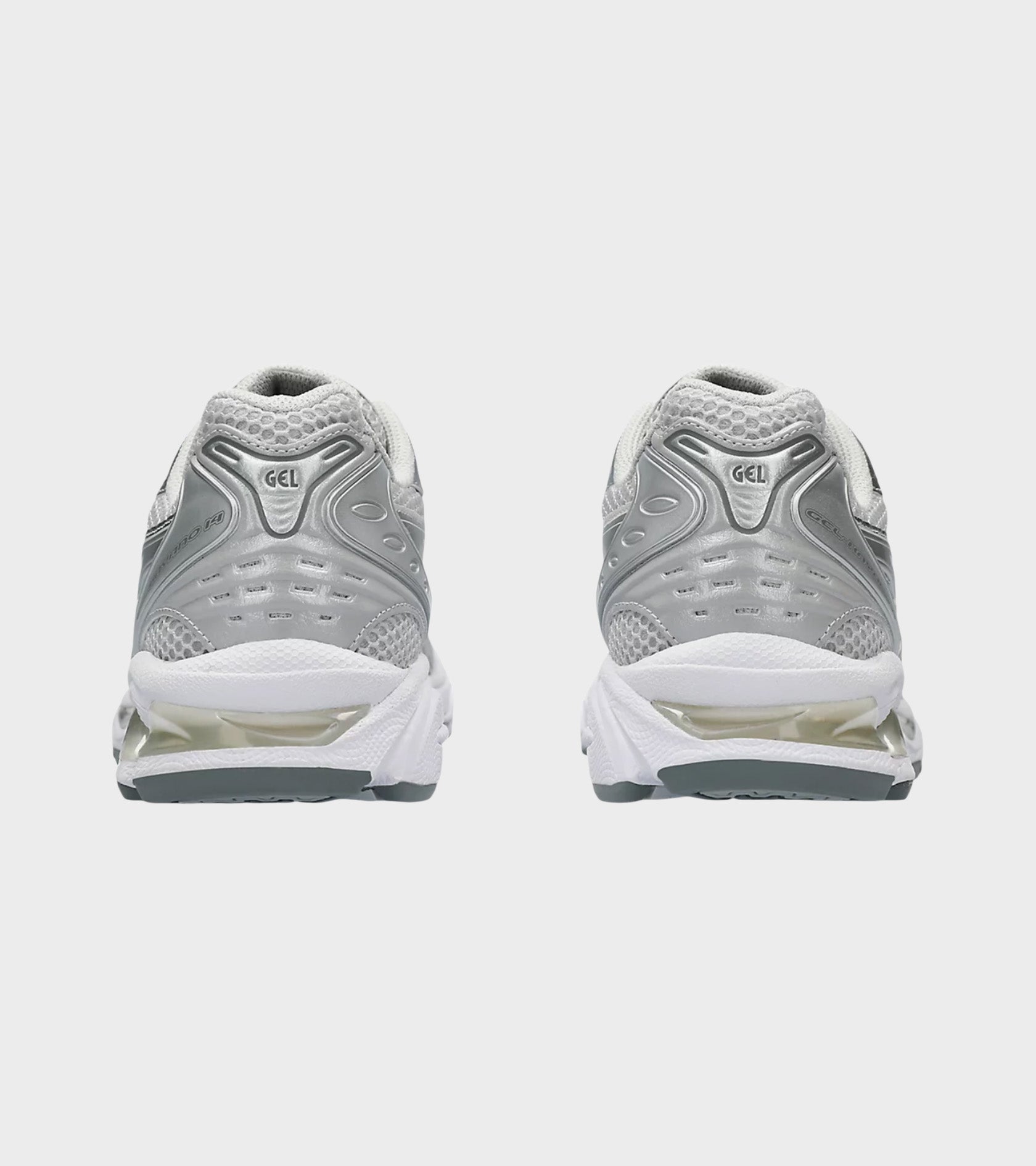 Gel-Kayano 14 fra Asics i en grå version med detaljer i sølv.
