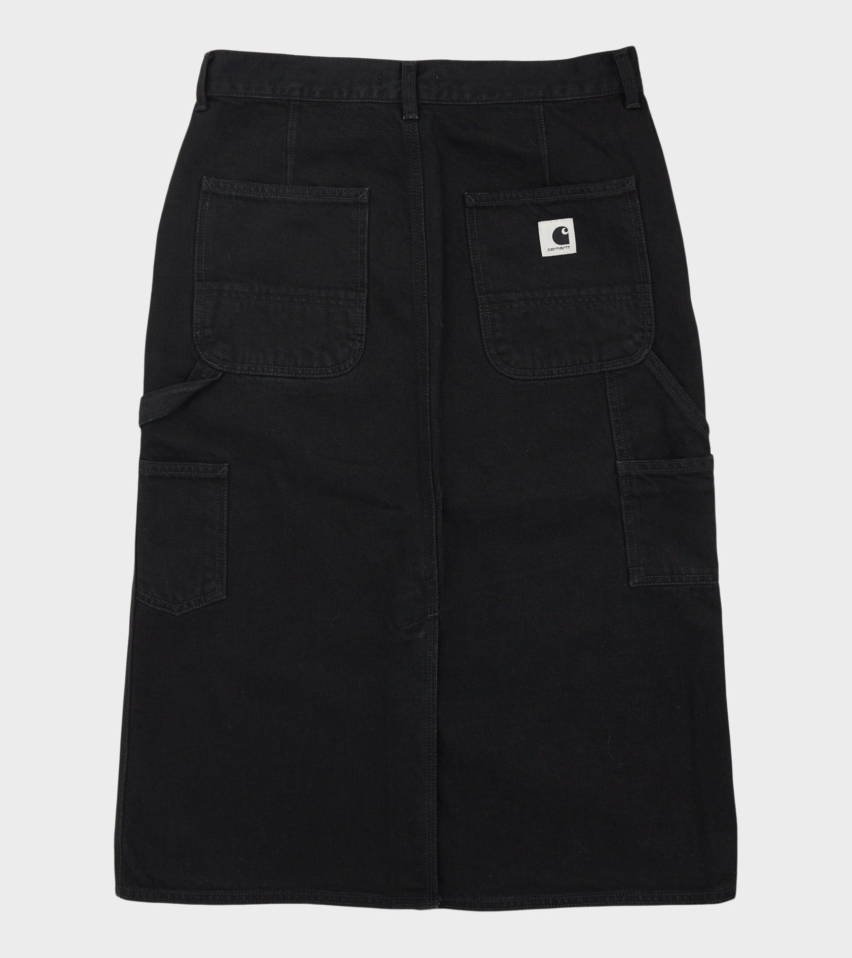 Sort nederdel i bomuldsdenim fra Carhartt WIP. W Single Knee Skirt har en skrålomme i hver side samt fem lommer og en 'hammer-loop' bagpå. Bagpå er en slids samt det ikoniske logo.
