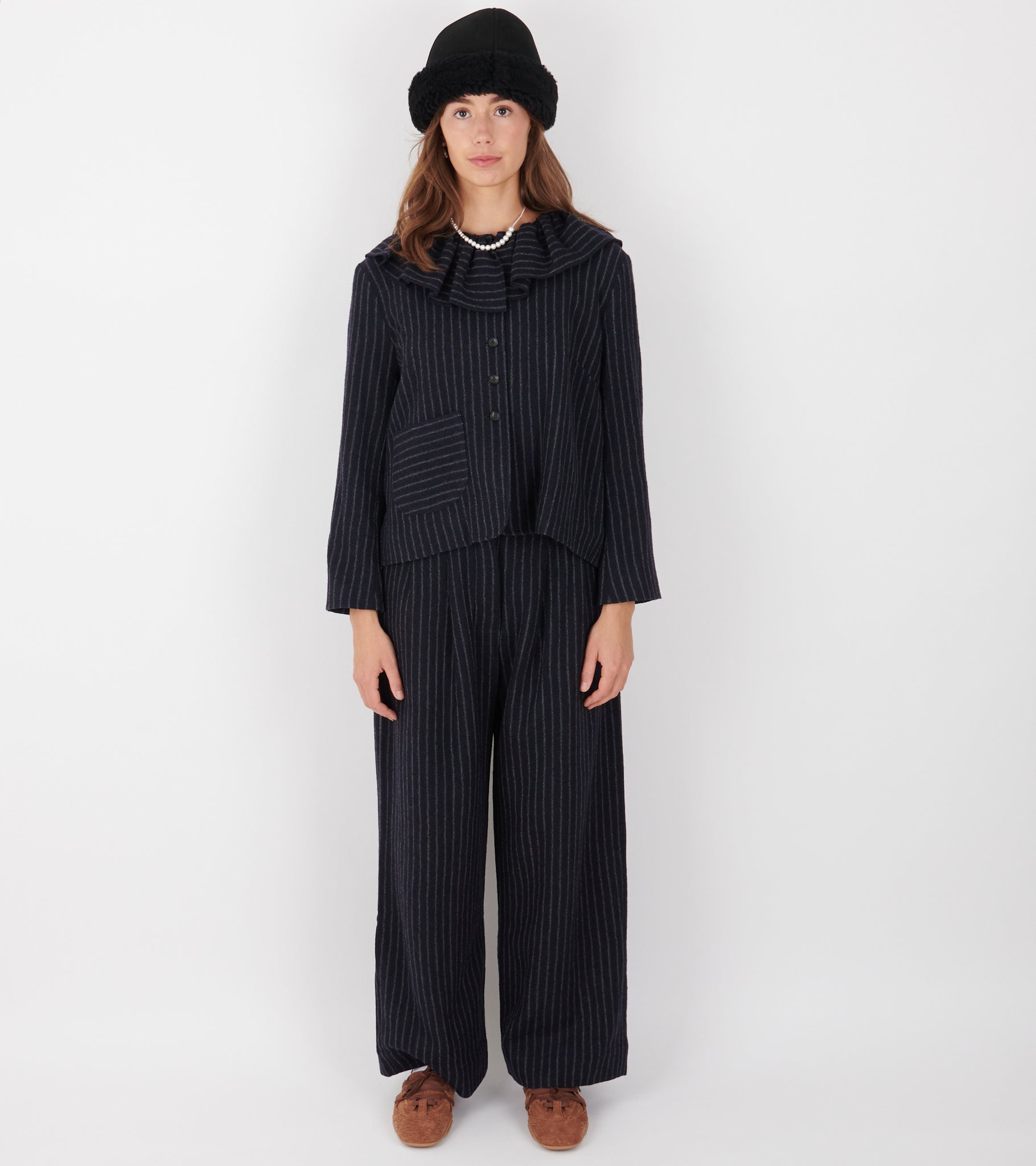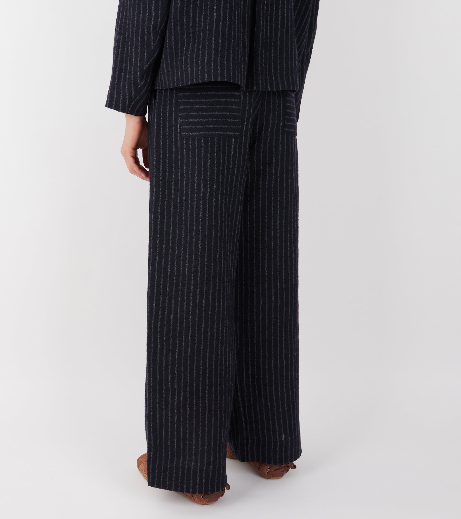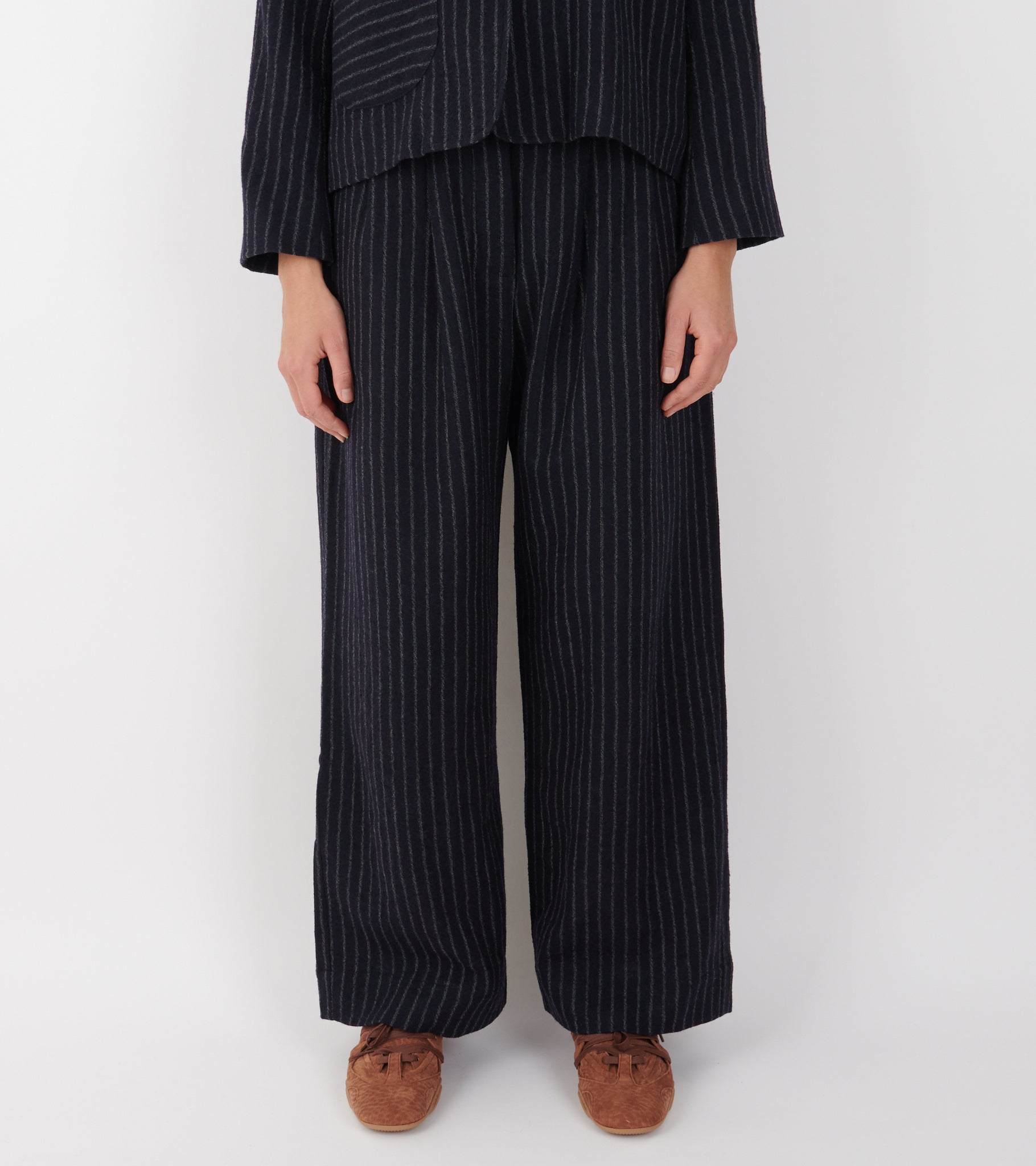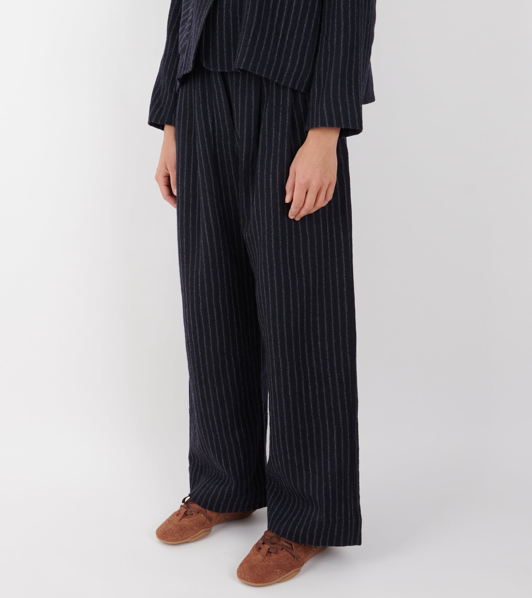 Japanese Striped Boucle Mara Trouser Navy/Grey