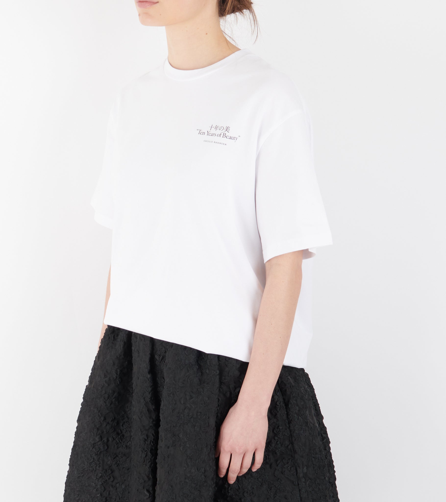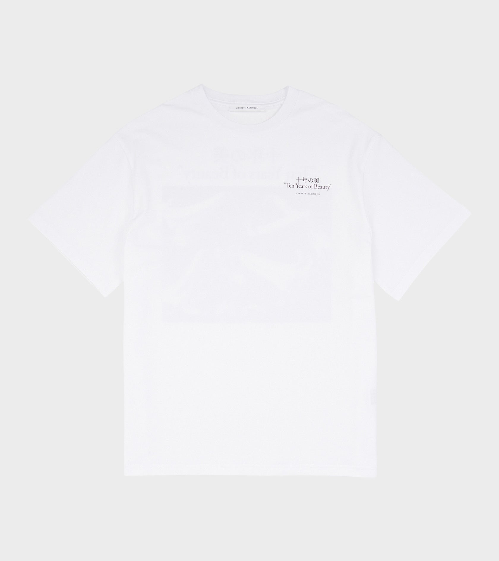 Hvid t-shirt med print fra Cecilie Bahnsen. T-shirt har print ved venstre bryst samt bagpå.