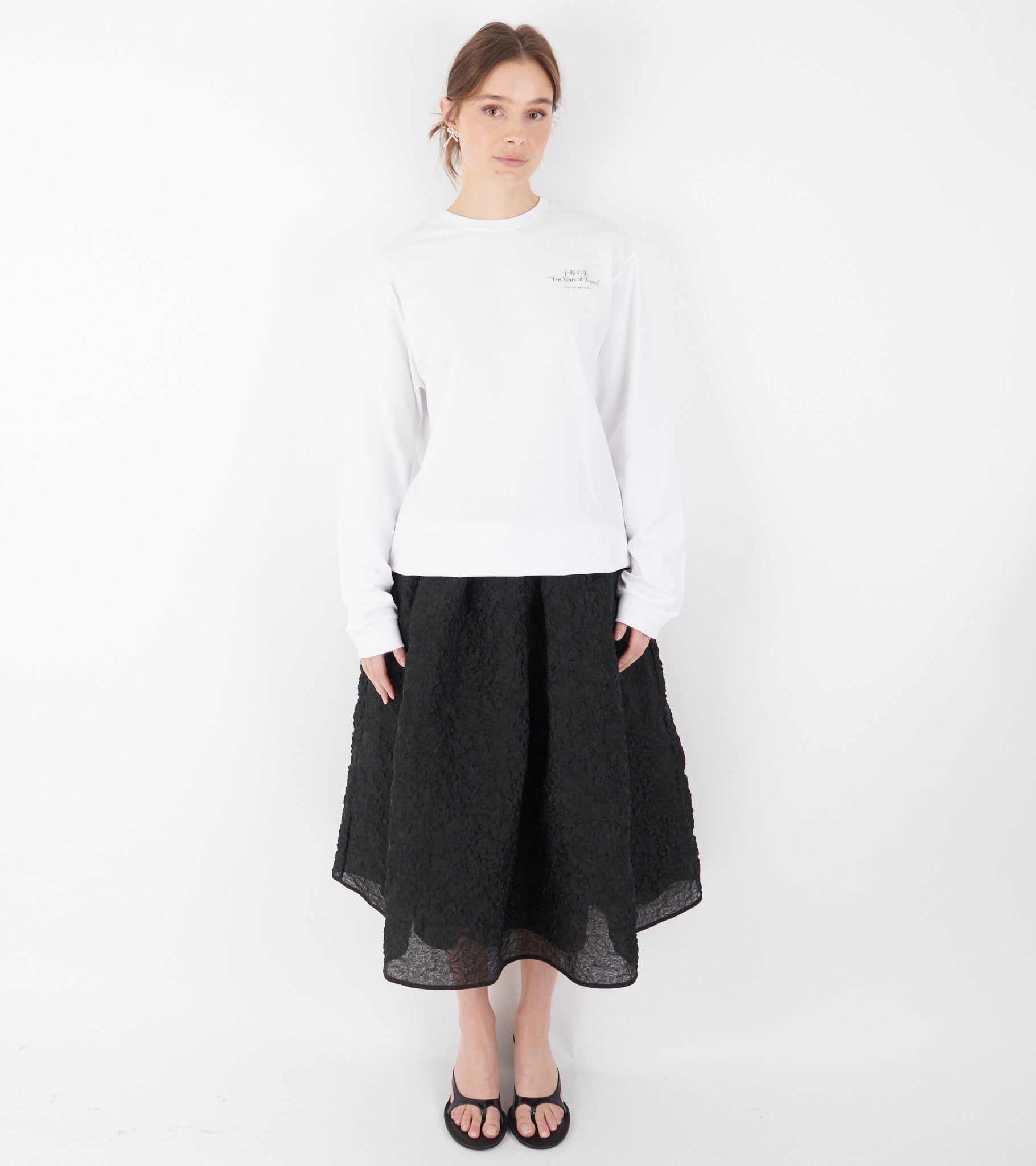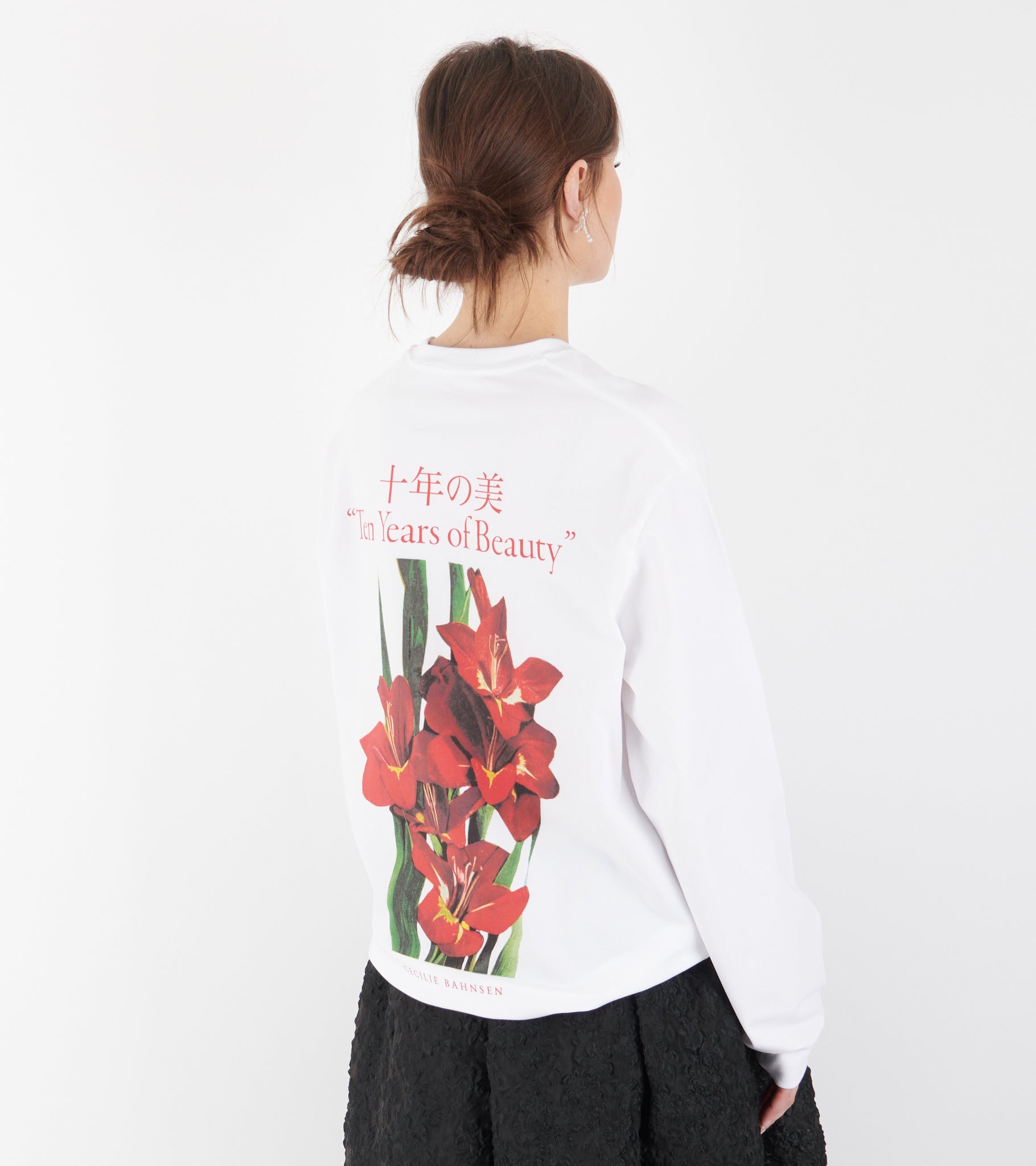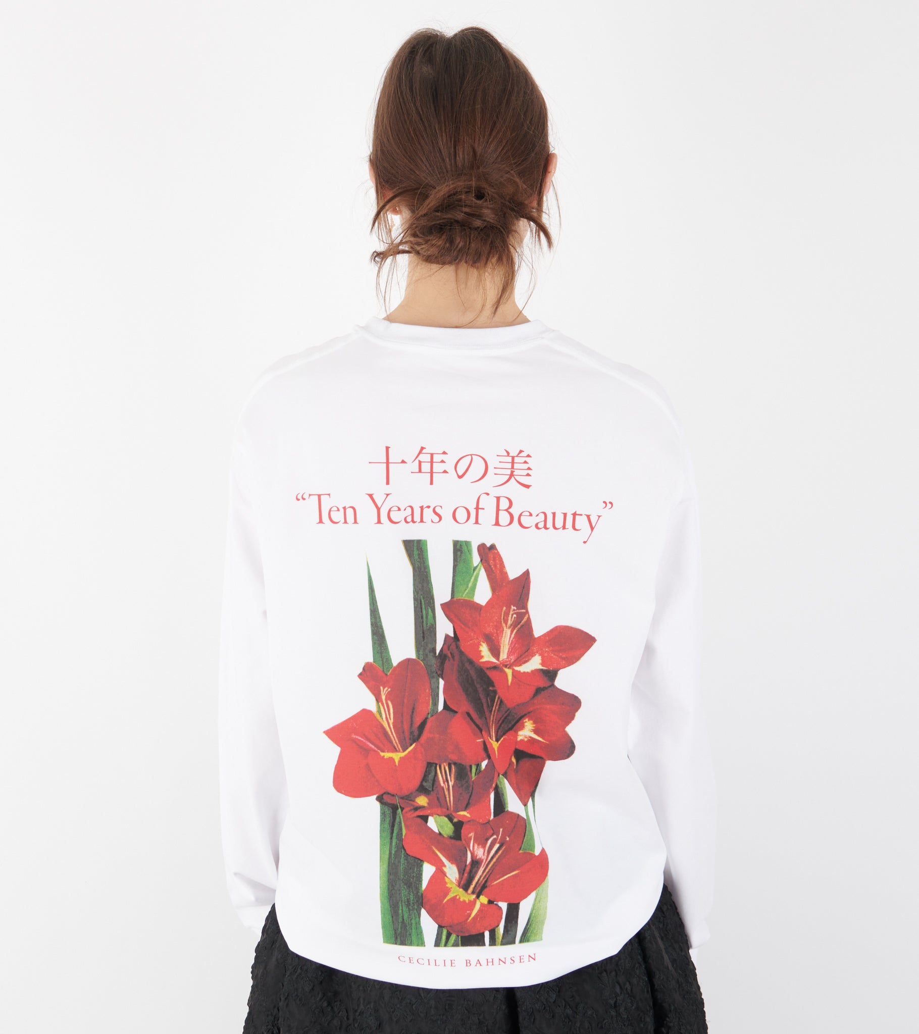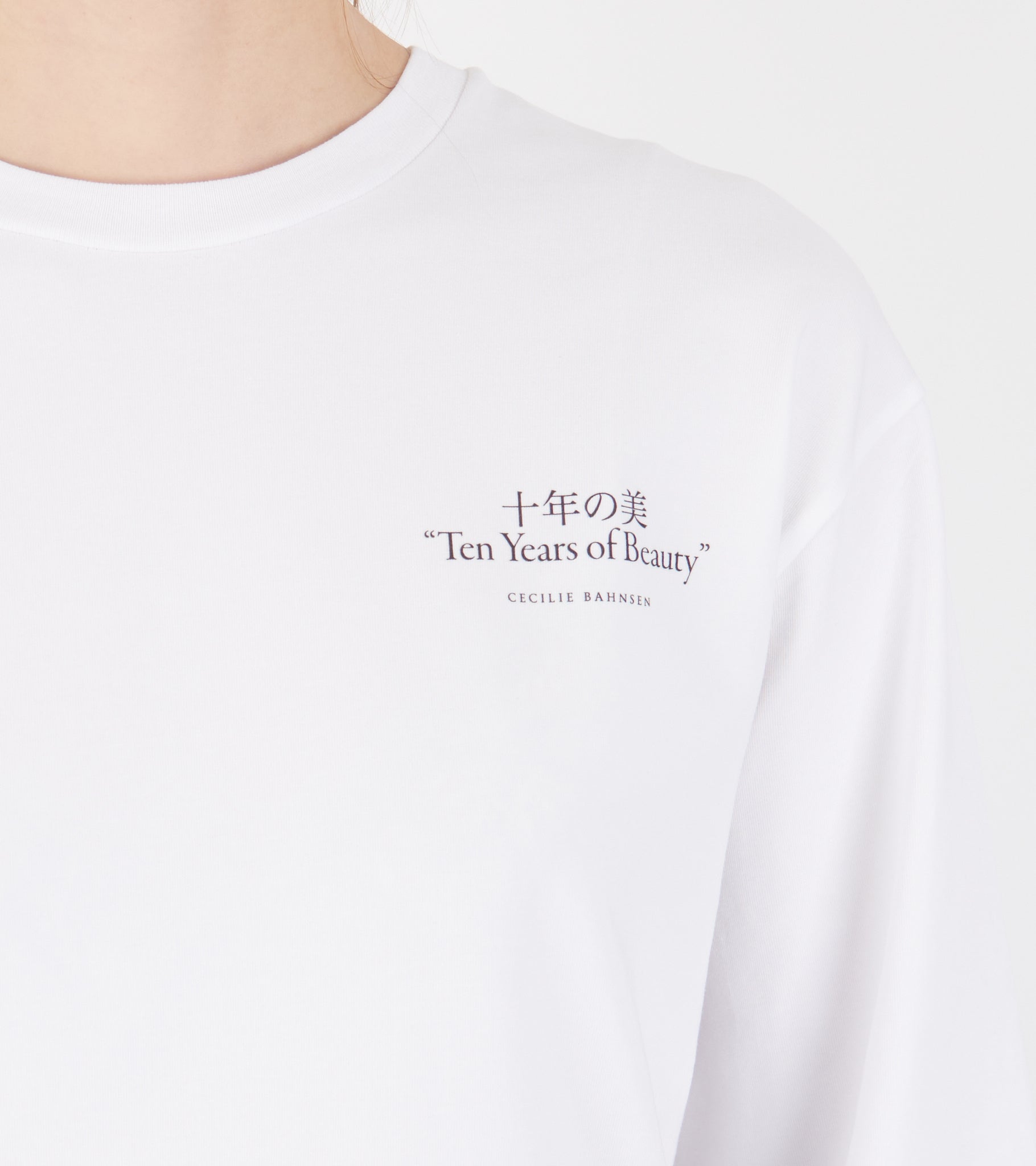 Langærmet hvid t-shirt med print fra Cecilie Bahnsen. Lily T-shirt har print ved venstre bryst samt bagpå.