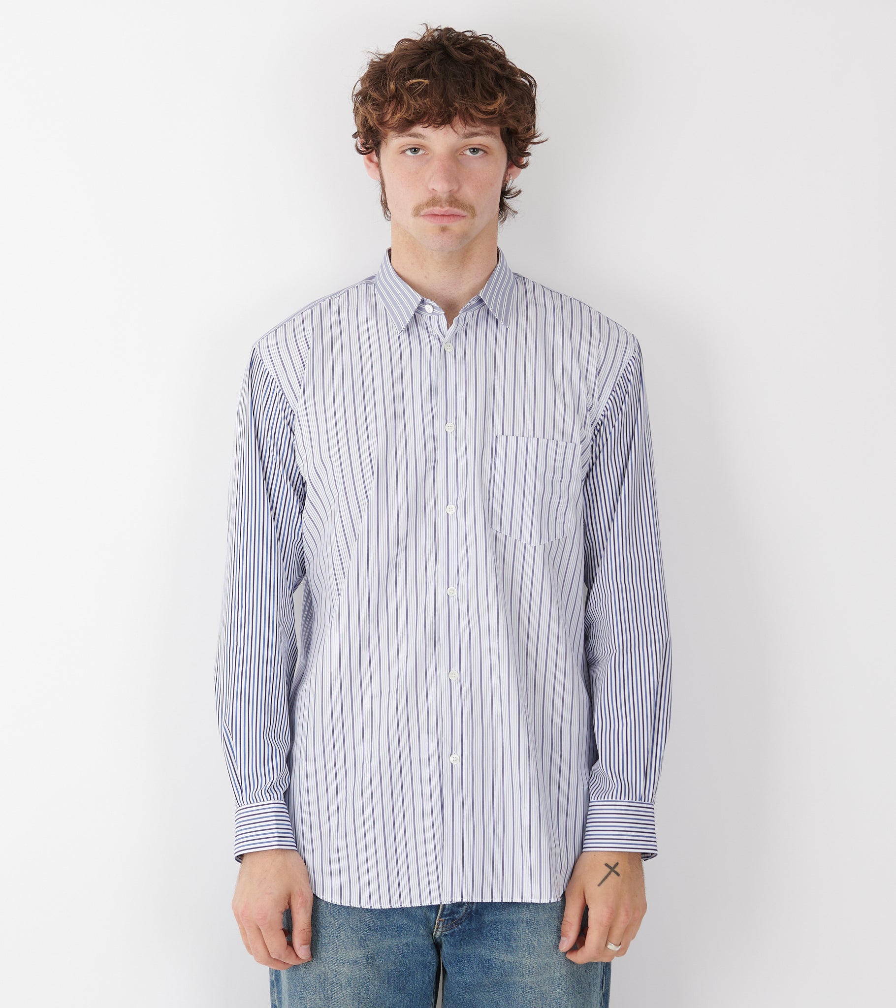 Hvid skjorte med blå striber fra Comme des Garcons Shirt.