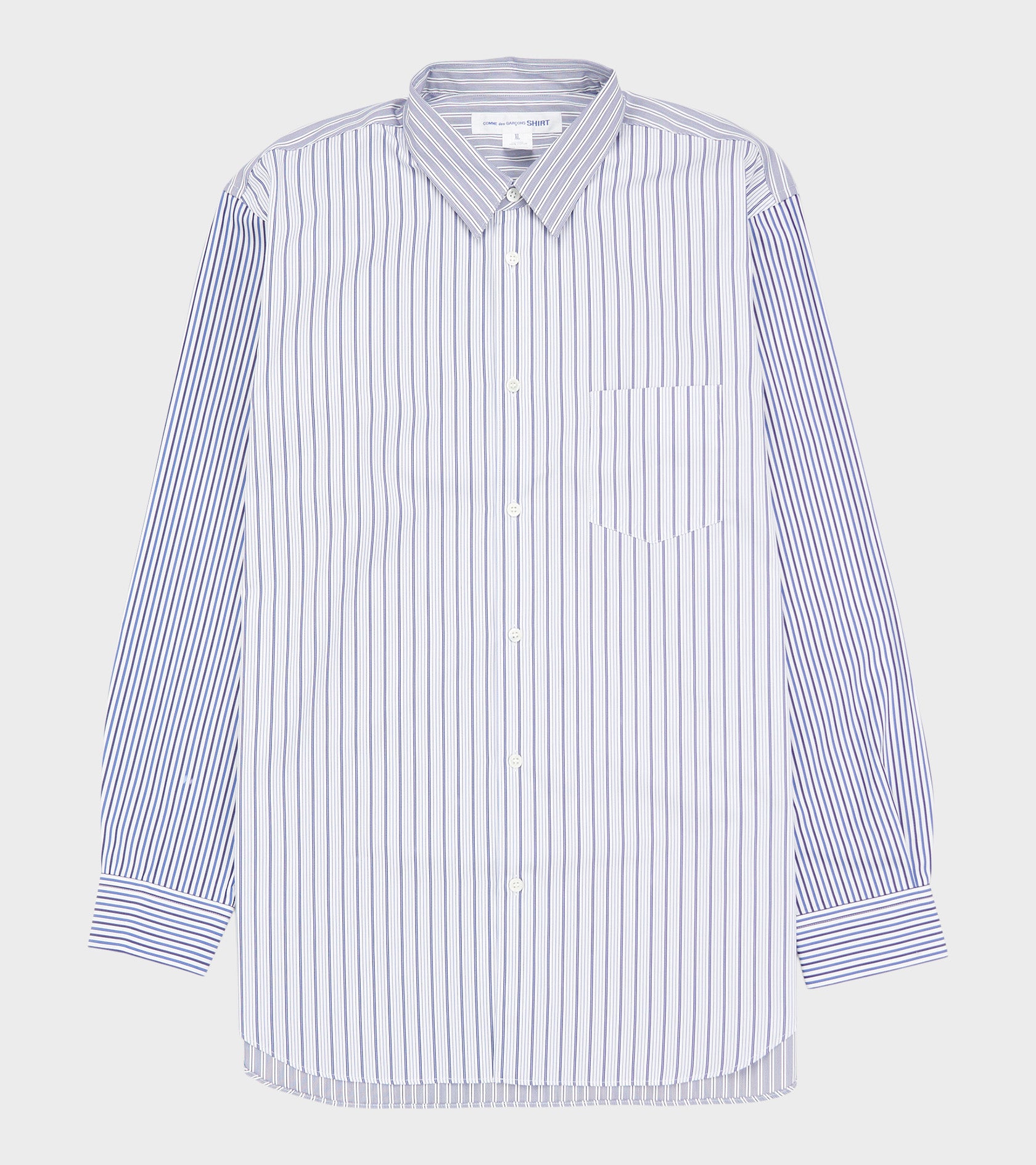 Hvid skjorte med blå striber fra Comme des Garcons Shirt. Skjorten er fremstillet i bomuldspoplin og har en klassisk krave, en knaplukning og en brystlomme.