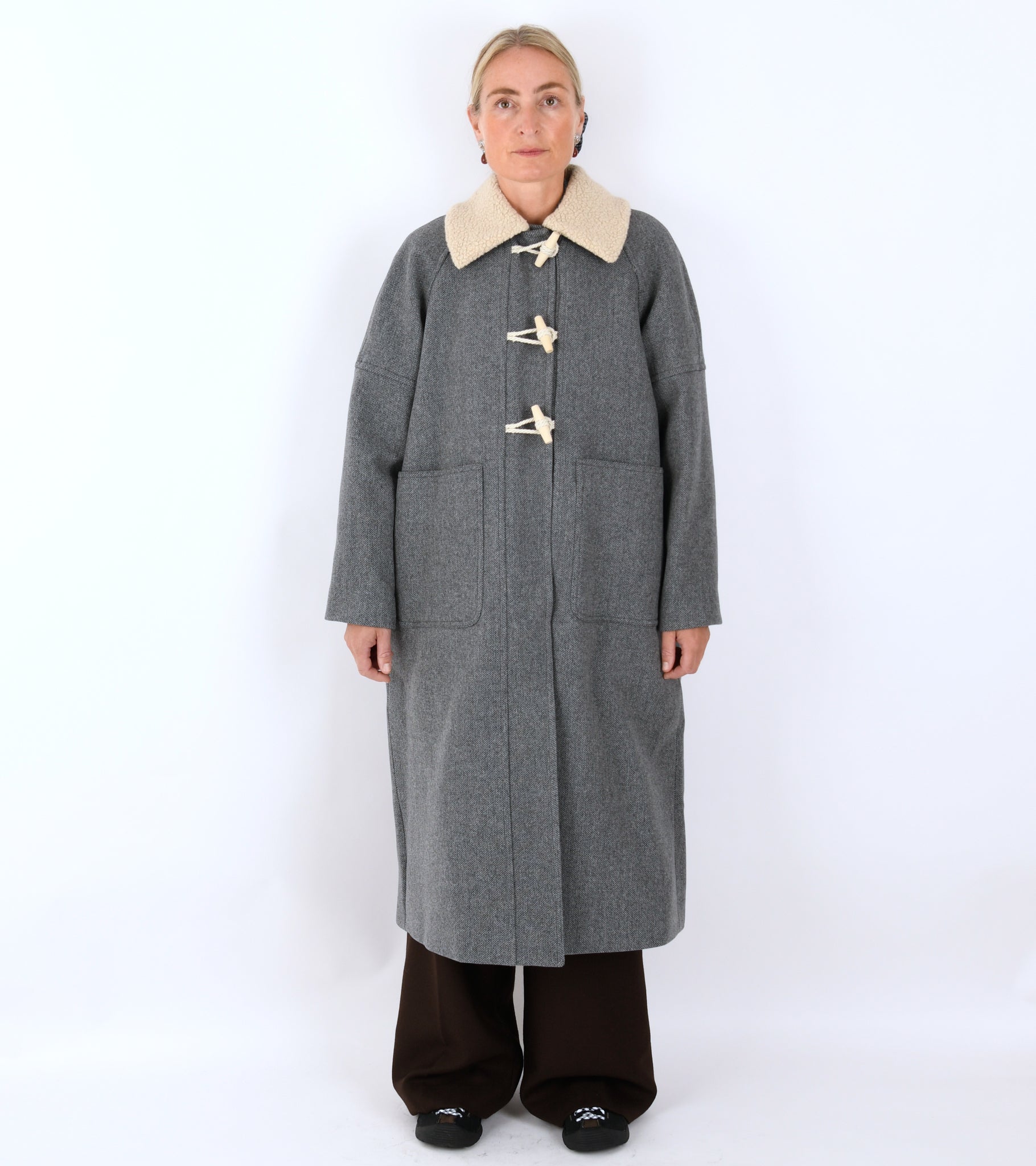 - Model: Bibi Duffel Coat Grey Structure