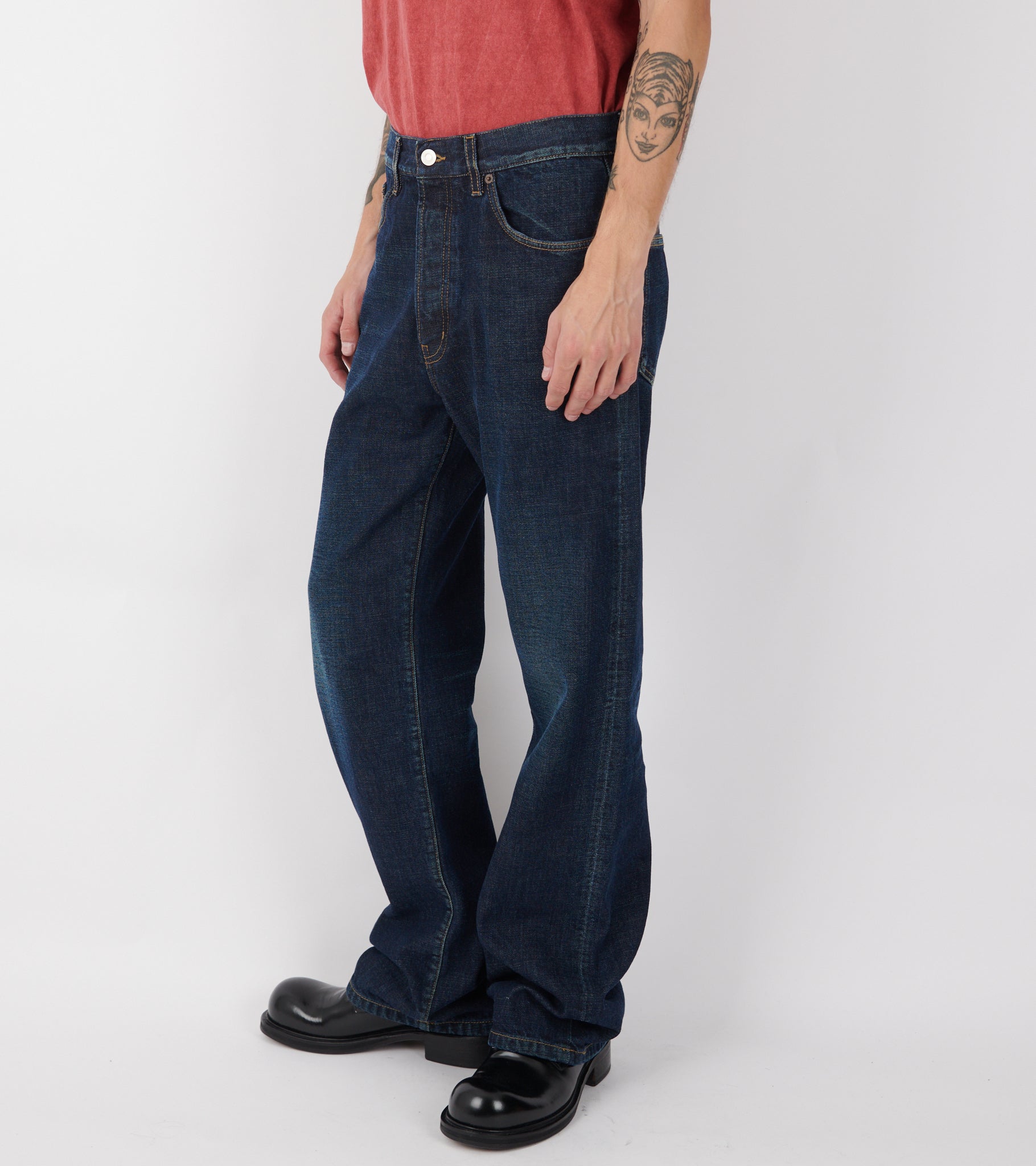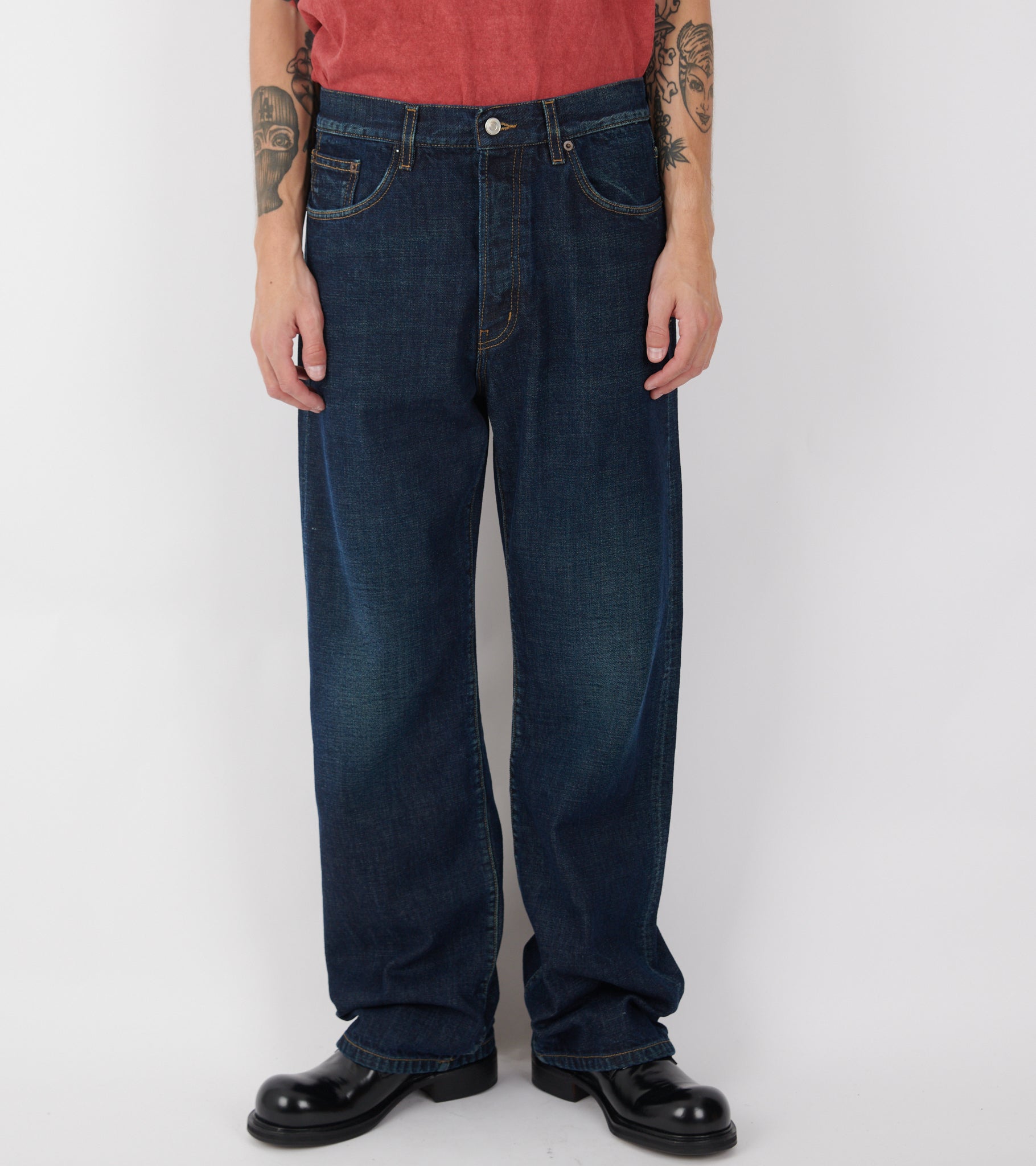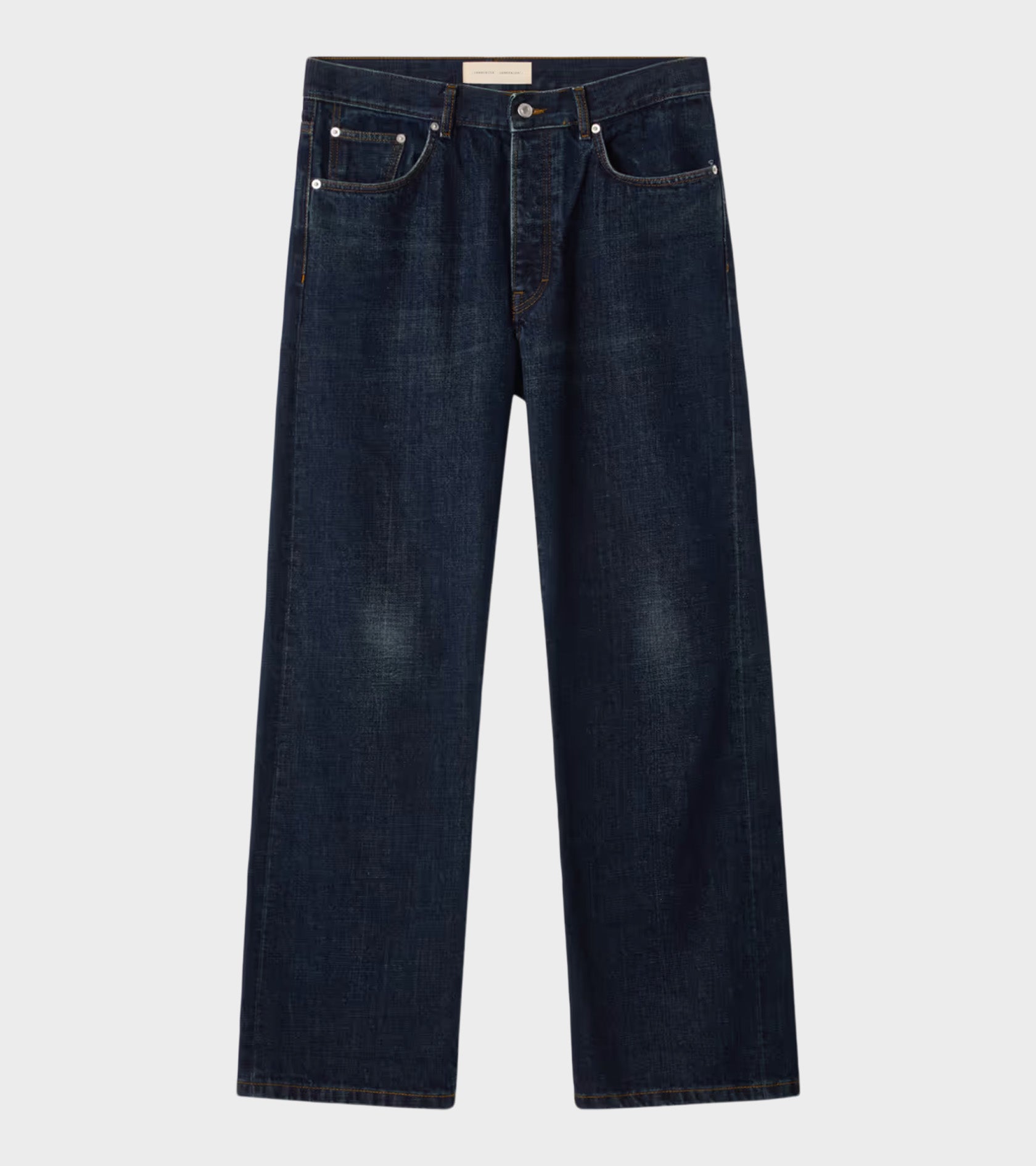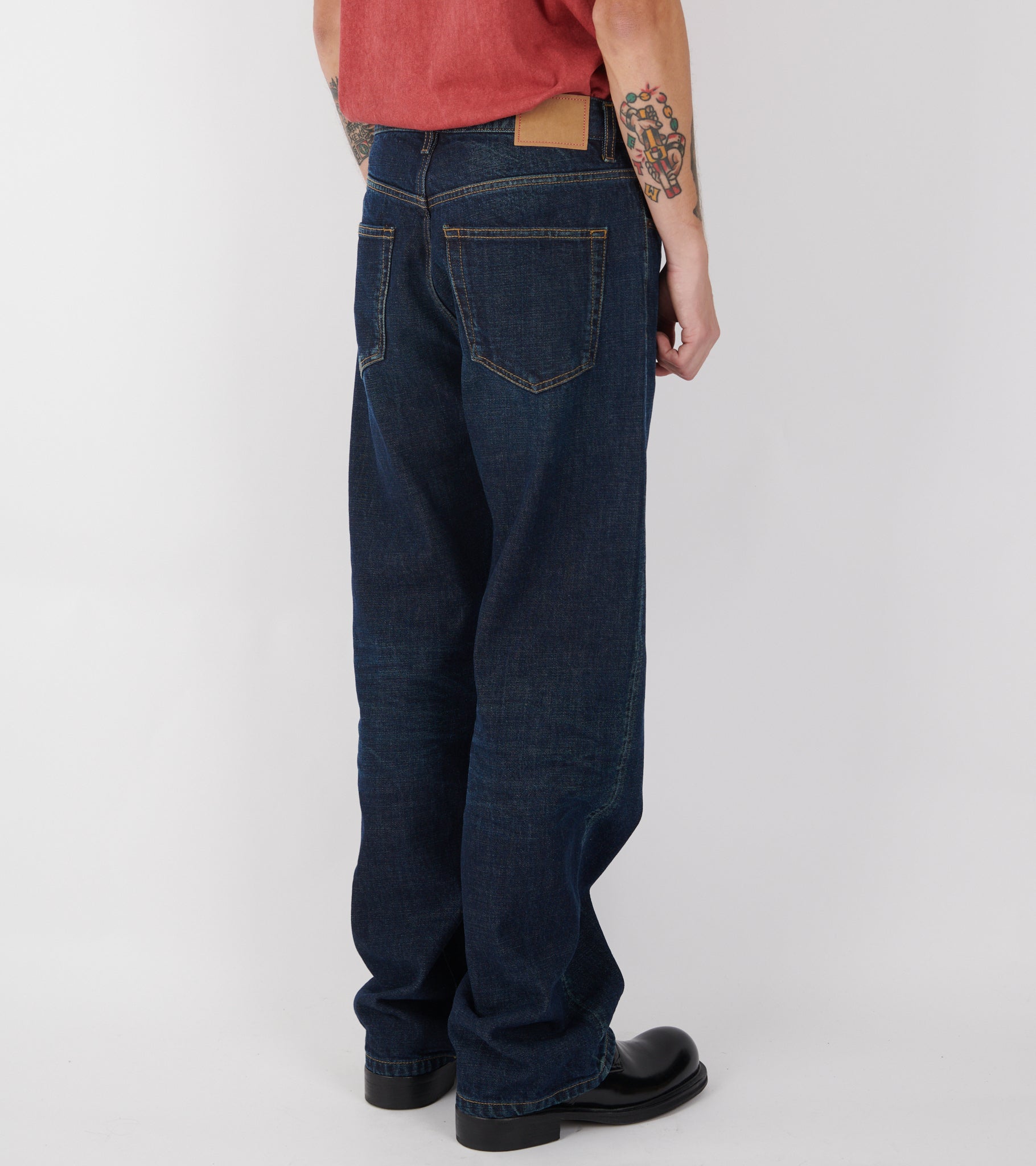 Mørkeblå selvedge denim jeans fra Jeanerica. Disse jeans er fremstillet i bomuldsdenim uden stræk og har bæltestropper, tre skrålommer samt to baglommer. Pasformen er afslappet med brede lige ben.