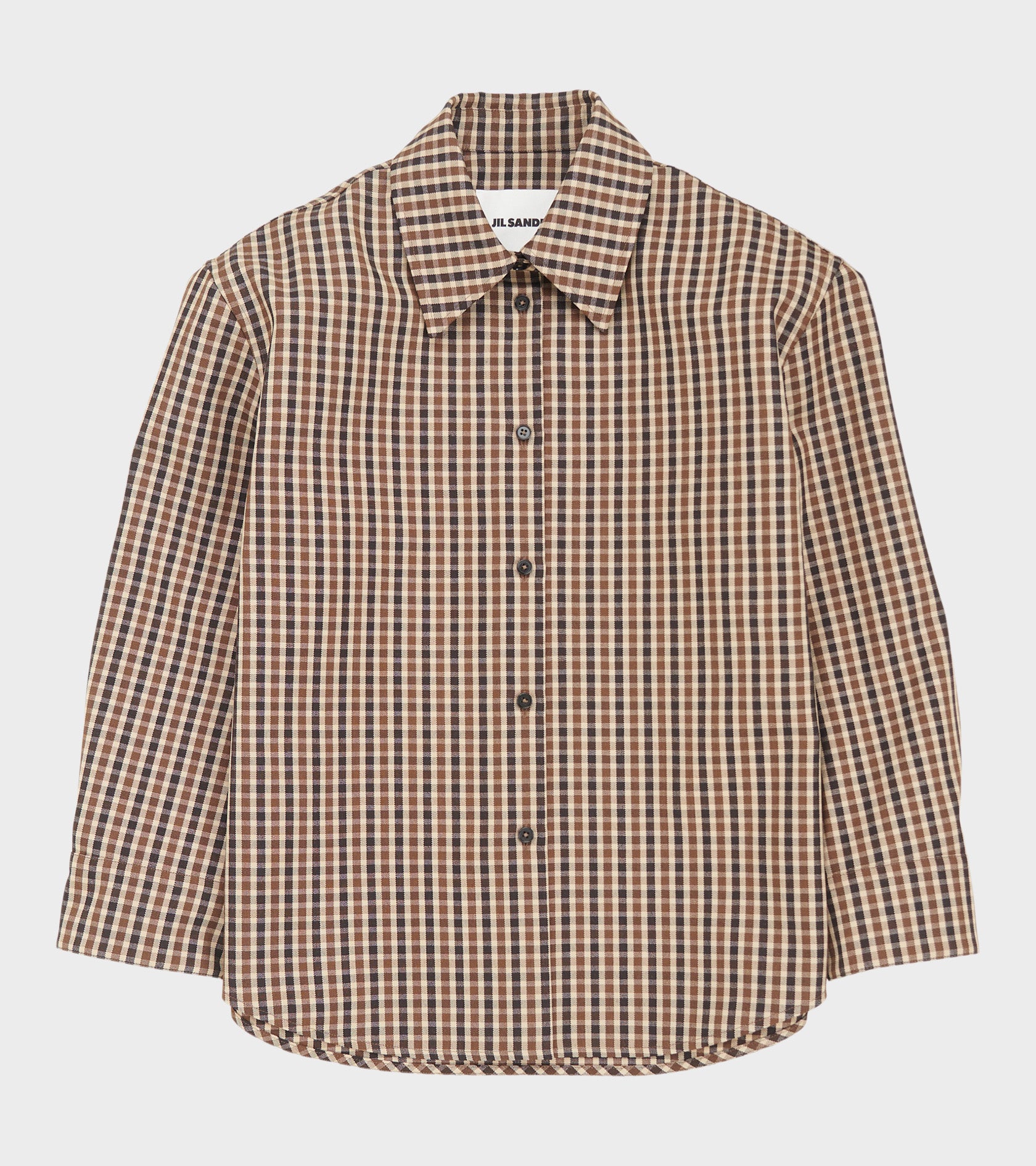 Ternet brun skjorte fremstillet i jomfru uld fra Jil Sander.