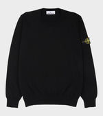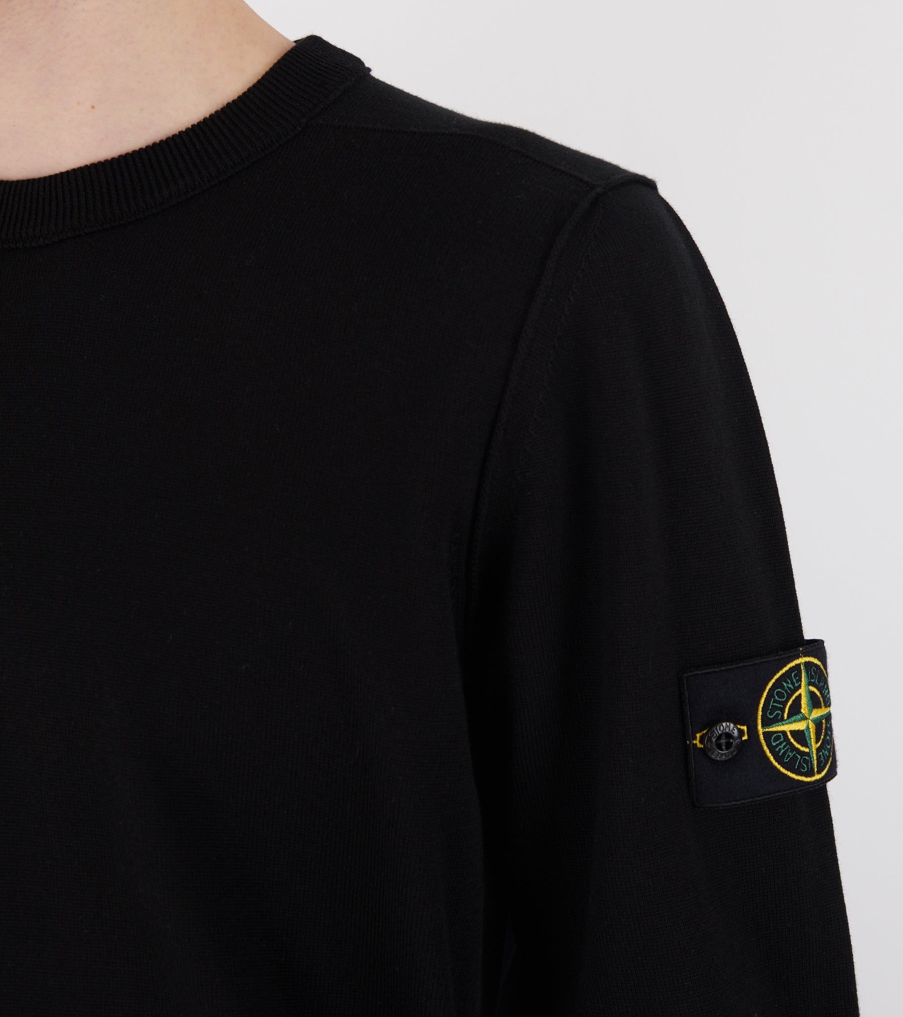 Sort strik i bomuldsgarn fra Stone Island. På venstre ærme er det ikoniske Stone Patch.