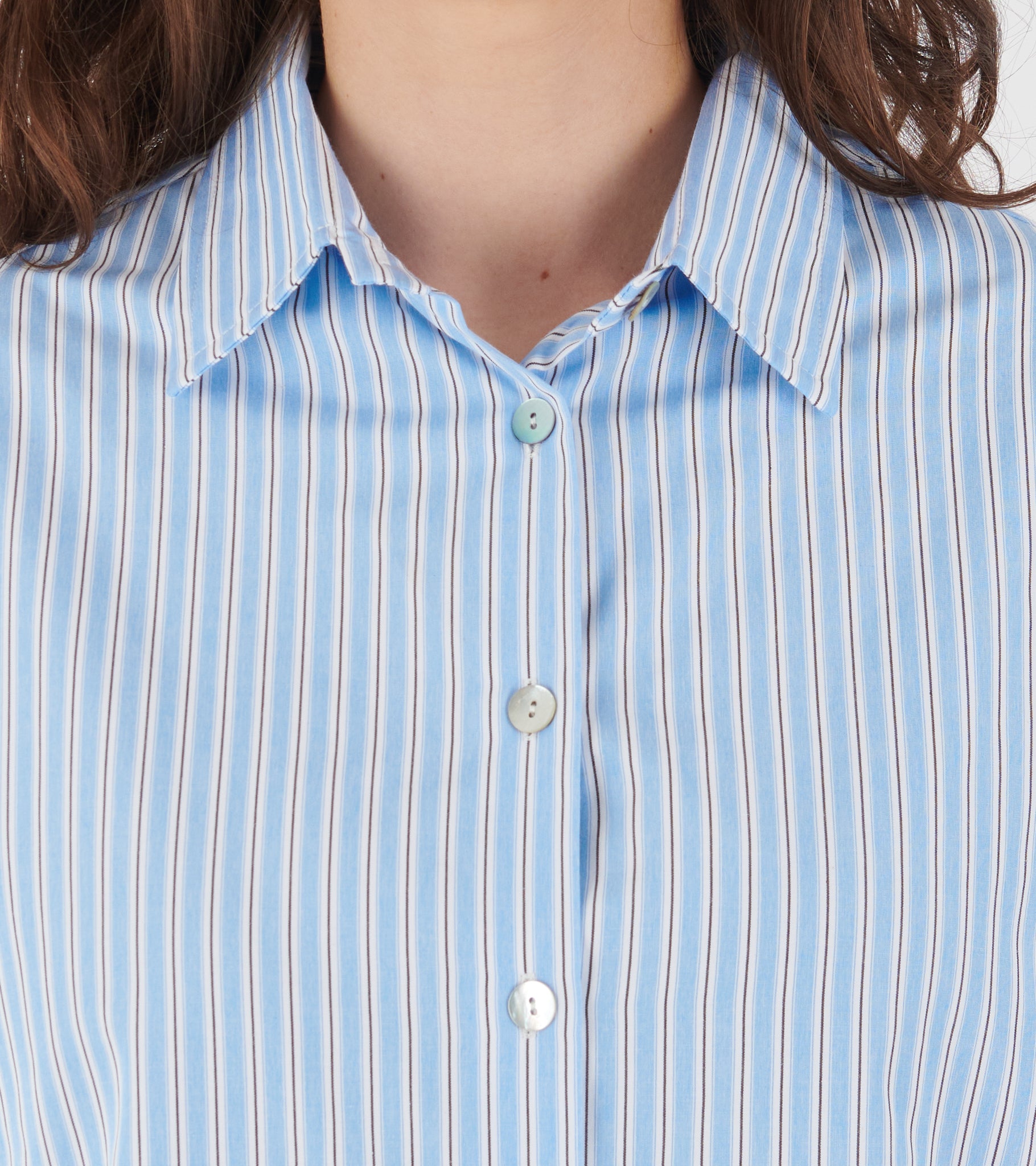 Klassisk stribet skjorte fra Mati Mati. Signe Shirt har en klassisk krave samt en knaplukning med perlemorsknapper.