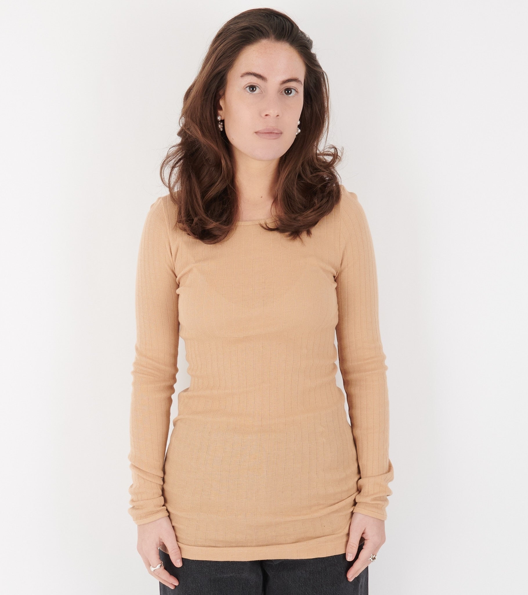 Den ikoniske 101 Rib tee fra Nørgaard Paa Strøget. Kendt for at give "Byens Bedste Bryster". Ribberne er onesize og når du først har købt en, må du eje flere! Et must-have i din garderobe. Denne model er med ekstra længde.