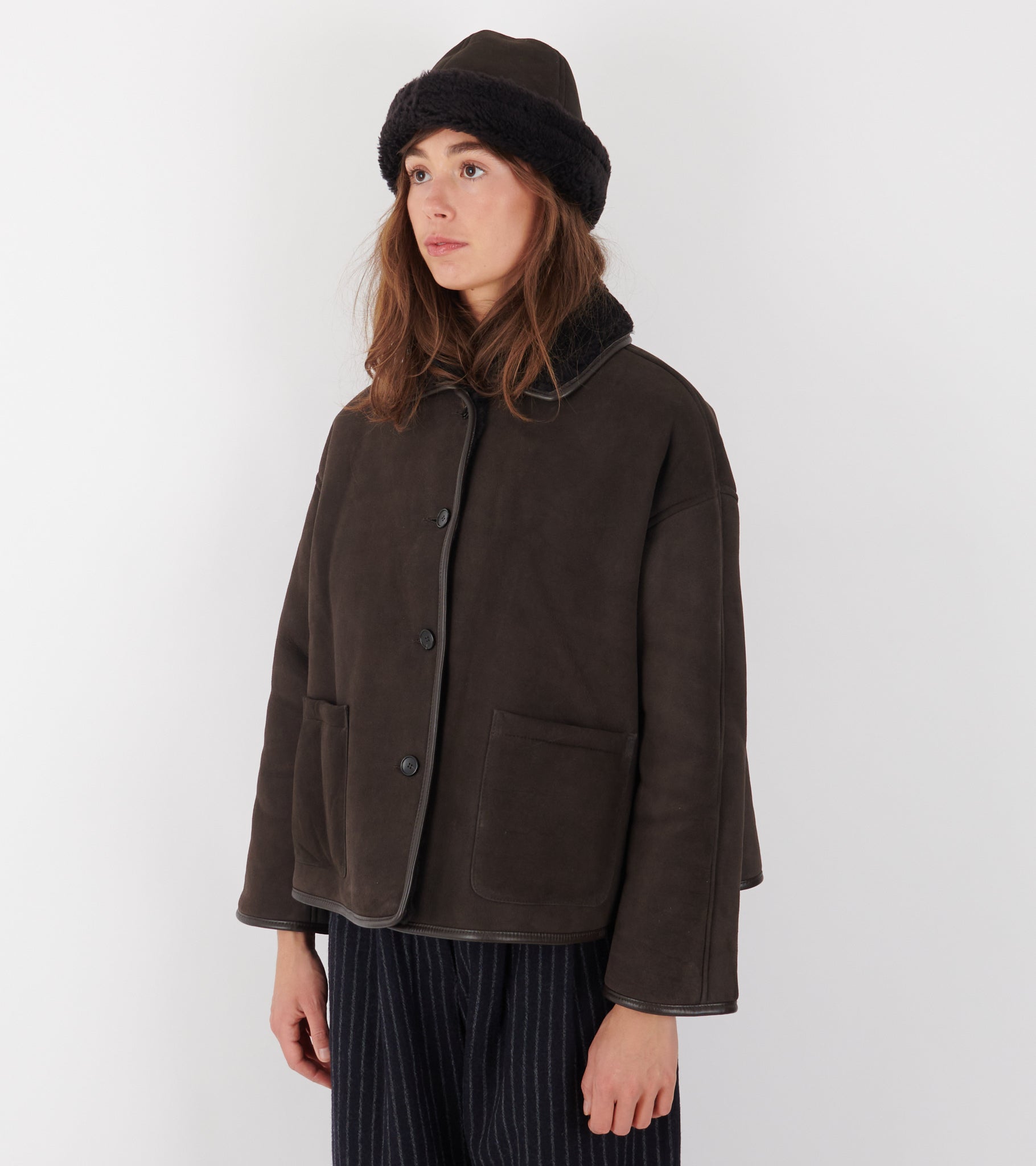 • Model: Suede Back Curly Hair Avis Jacket Chocolate