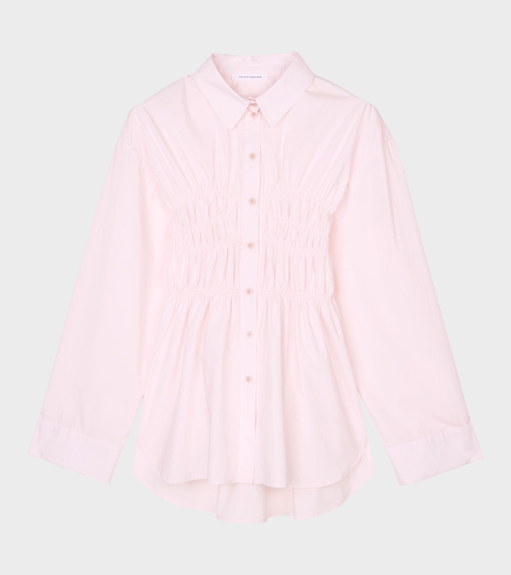 Lyserød skjorte i crispy bomuldspoplin fra Cecilie Bahnsen. Braxton Cotton Shirt har en klassisk krave, en knaplukning samt smock-detaljer på både front og ryg.