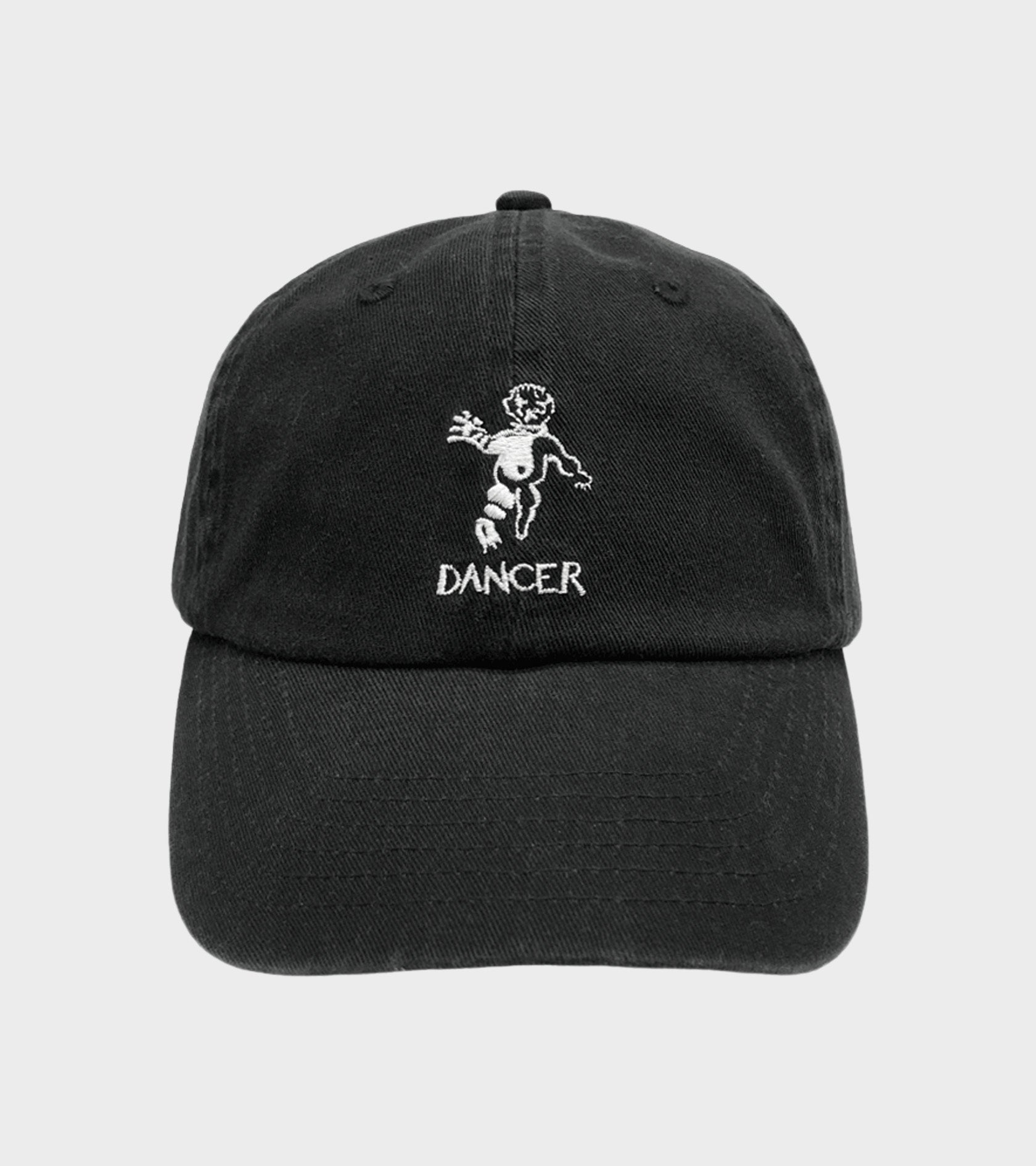 Sort kasket fra Dancer. Kasketten kan justeres i størrelsen og har et broderet logo på fronten.
