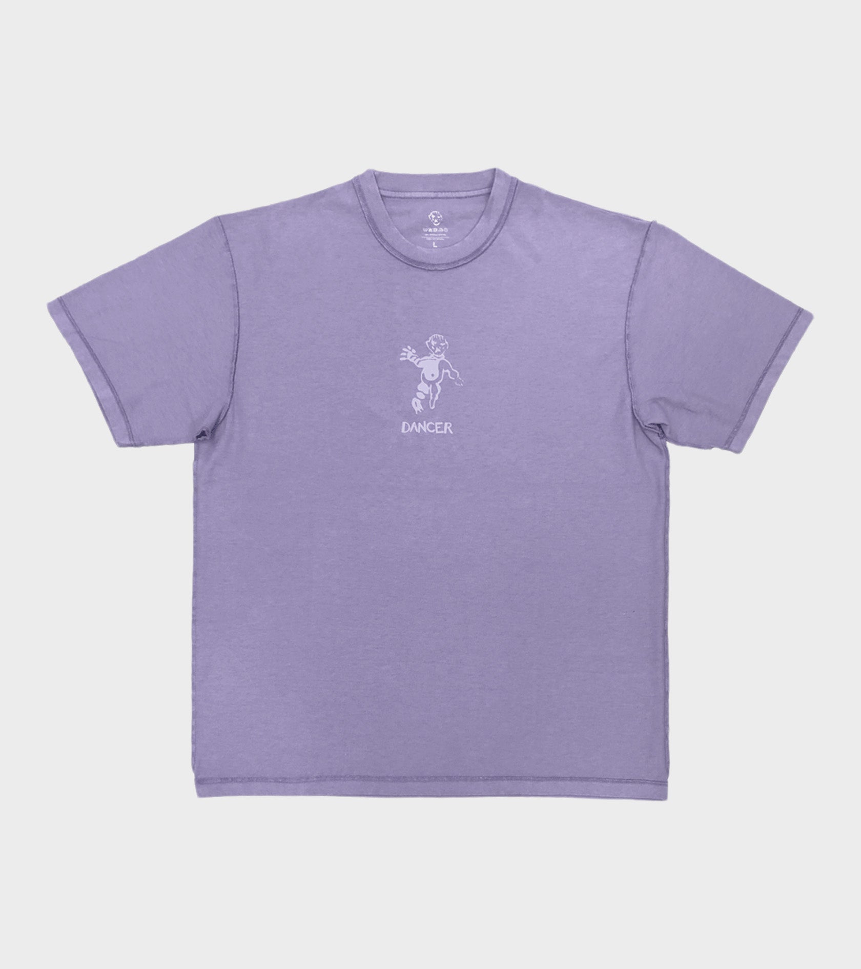 Lilla garment dyed t-shirt fra Dancer. T-shirten har 'inside-out' design med udvendige syninger.