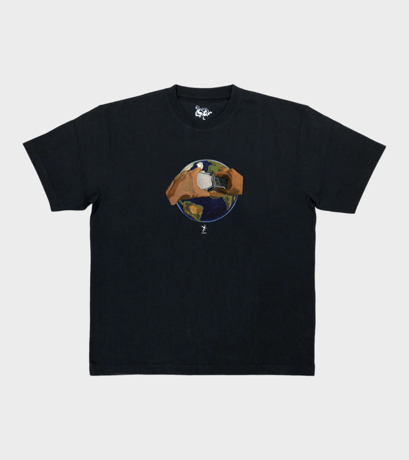 Sort t-shirt i økologisk bomuld fra Dancer. T-shirten har logoprint på fronten.