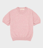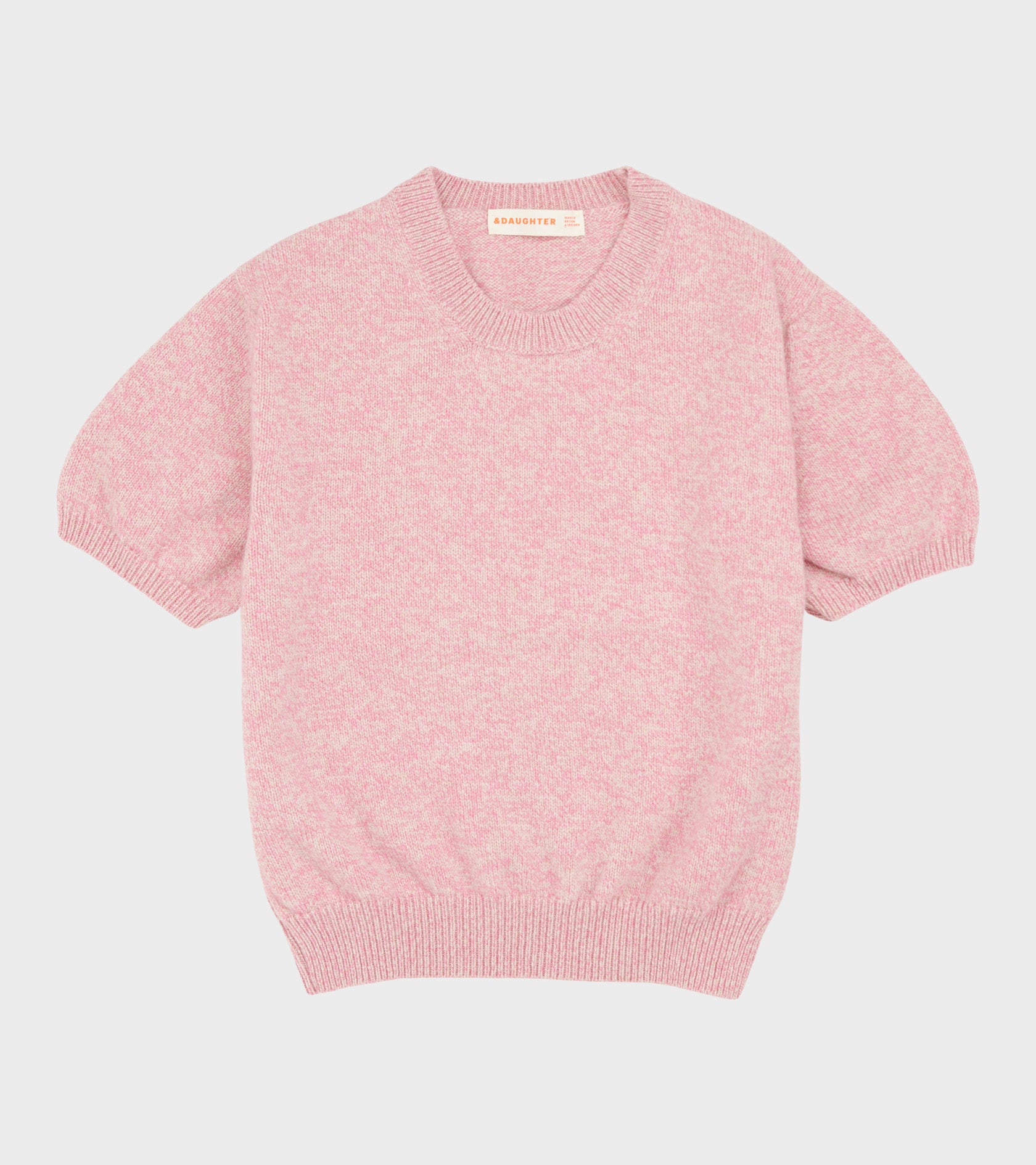 Strikket lyserød/beige meleret t-shirt i 100% 'Geelong' lammeuld fra &Daughter.