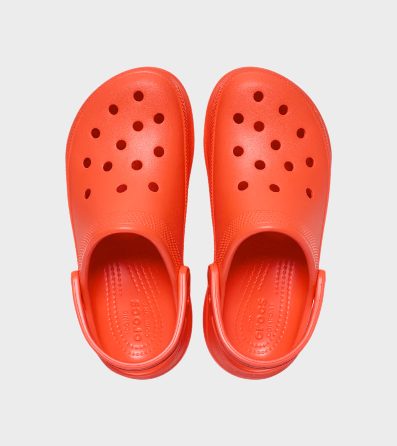 Bae Clog fra Crocs i en rød nuance. Disse sko er fremstillet i Termoplastisk (EVA) og har en 6 cm høj hæl. Bagpå er et diskret logo.