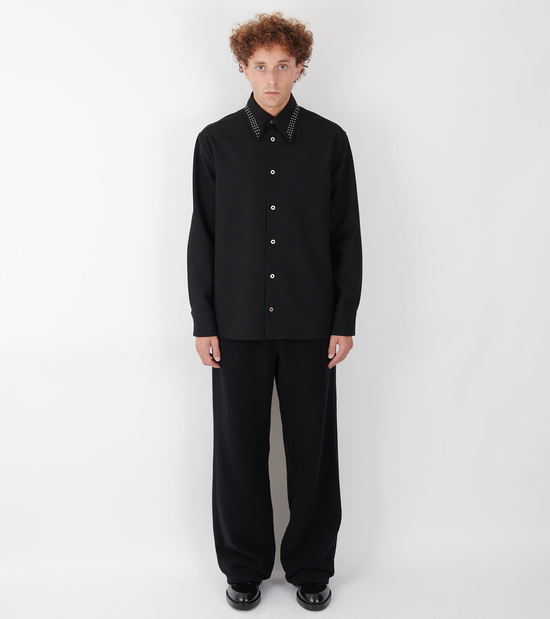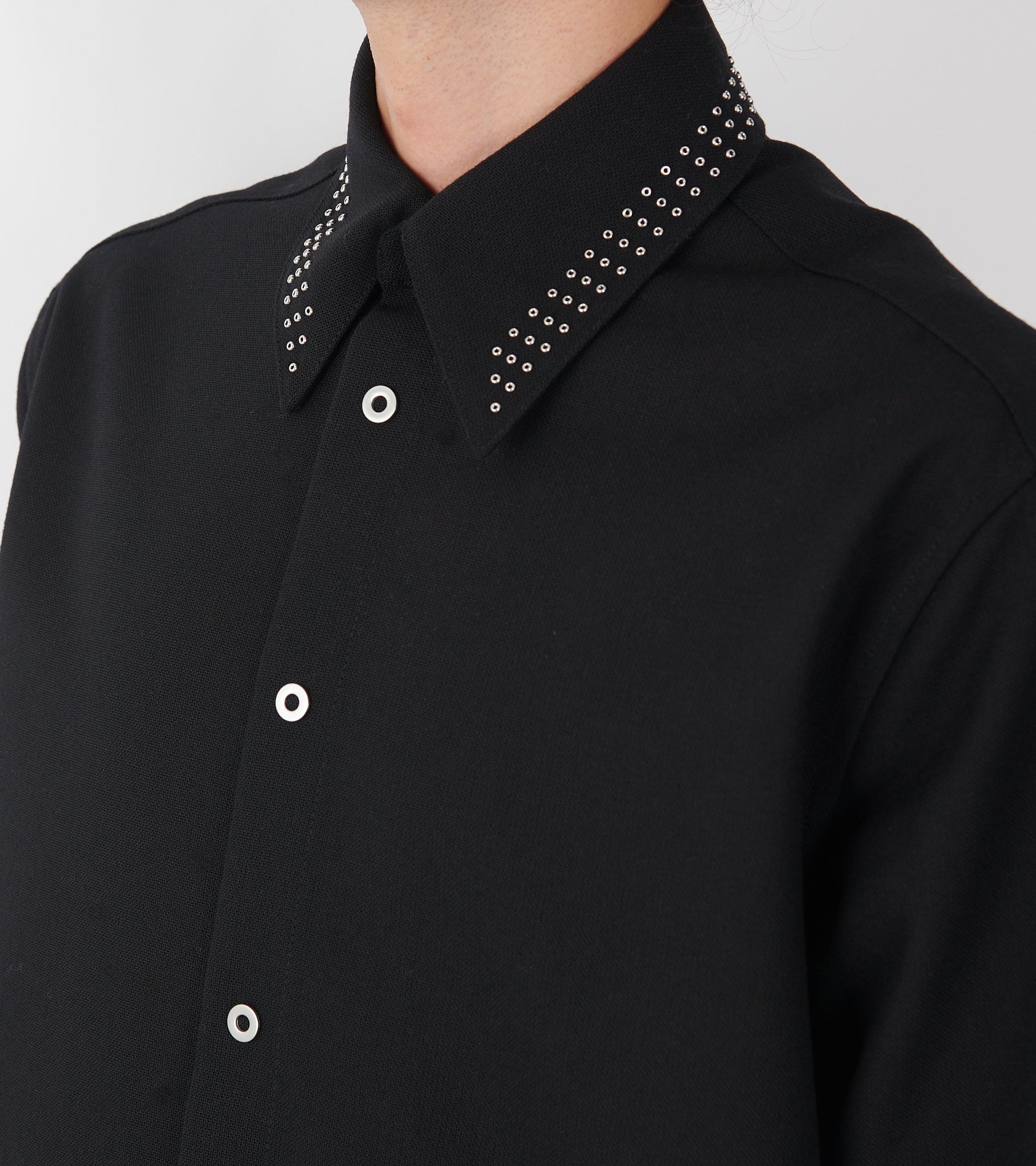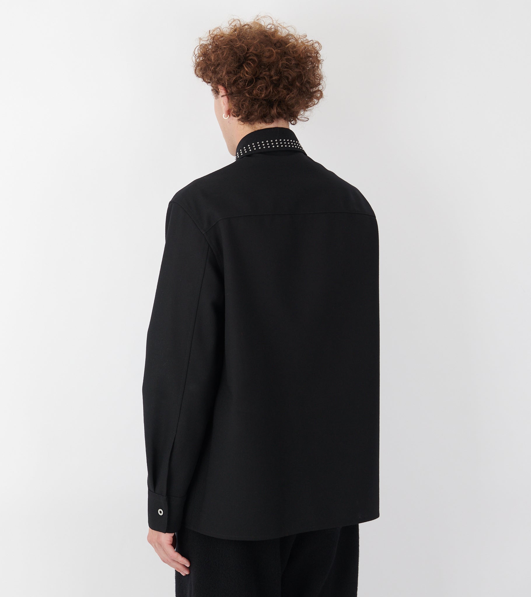 Sort skjorte i en vævet uld-poplin kvalitet fra Jil Sander. Skjorten har en let spids krave - detaljeret med metal-studs. På fronten er en trykknaplukning med eyelet metal-knapper.