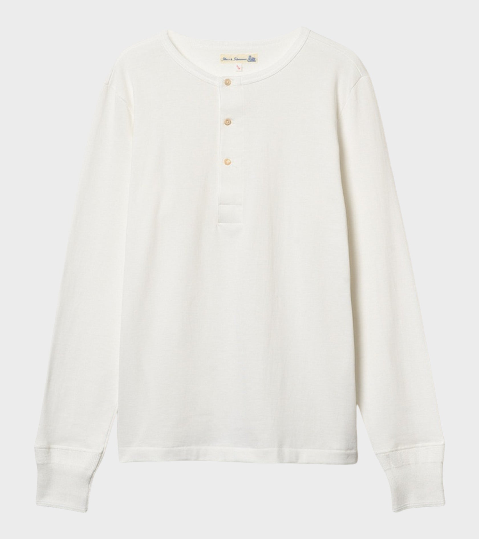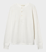 Langærmet hvid t-shirt med knapper fra Merz B Schwanen.