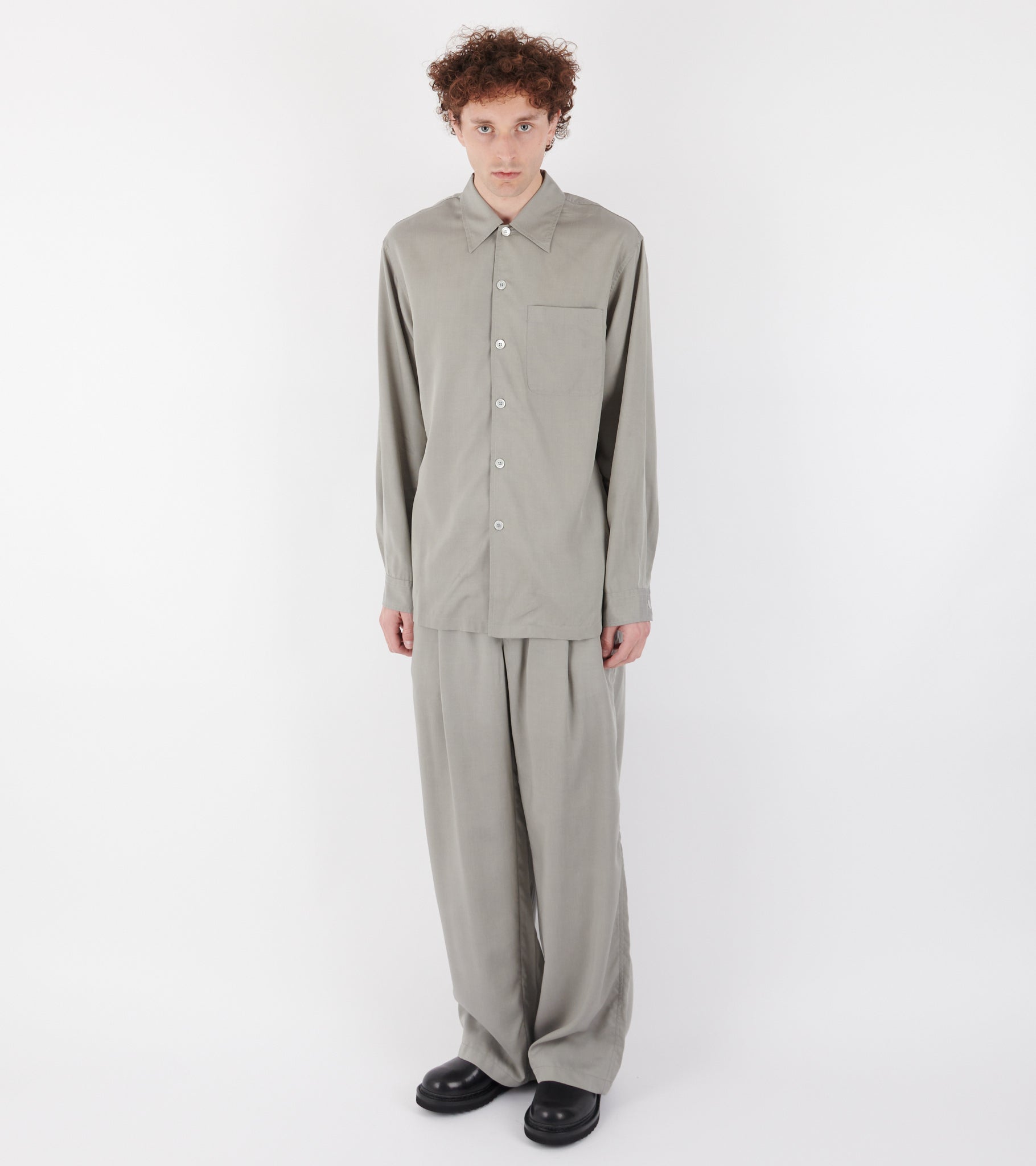 Grå skjorte i lyocell (tencel) fra Our Legacy. Skjorten har en lille slids i hver side, en brystlomme samt en knaplukning med perlemorsknapper. Skjorten er detaljeret med læg på ryggen samt et lige snit i bunden.
