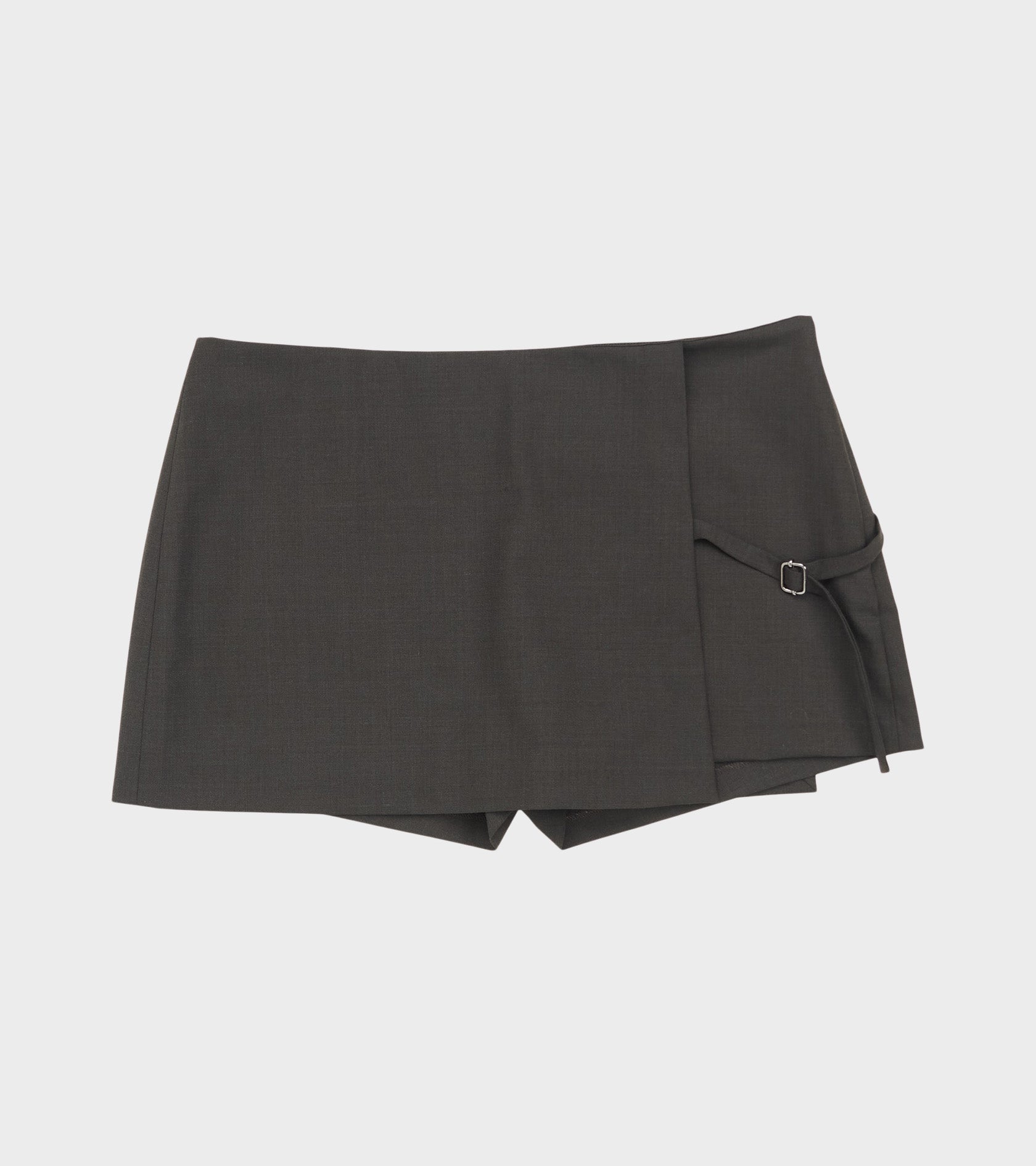 Korte brune shorts med overlappende mini-nederdel fra Paloma Wool.