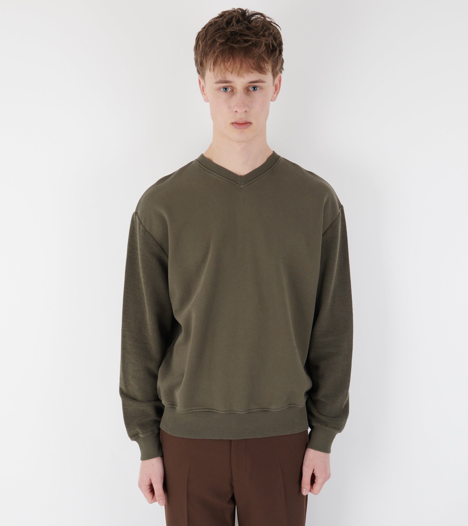 Olivengrøn sweatshirt med en lille v-udskæring fra Paloma Wool.