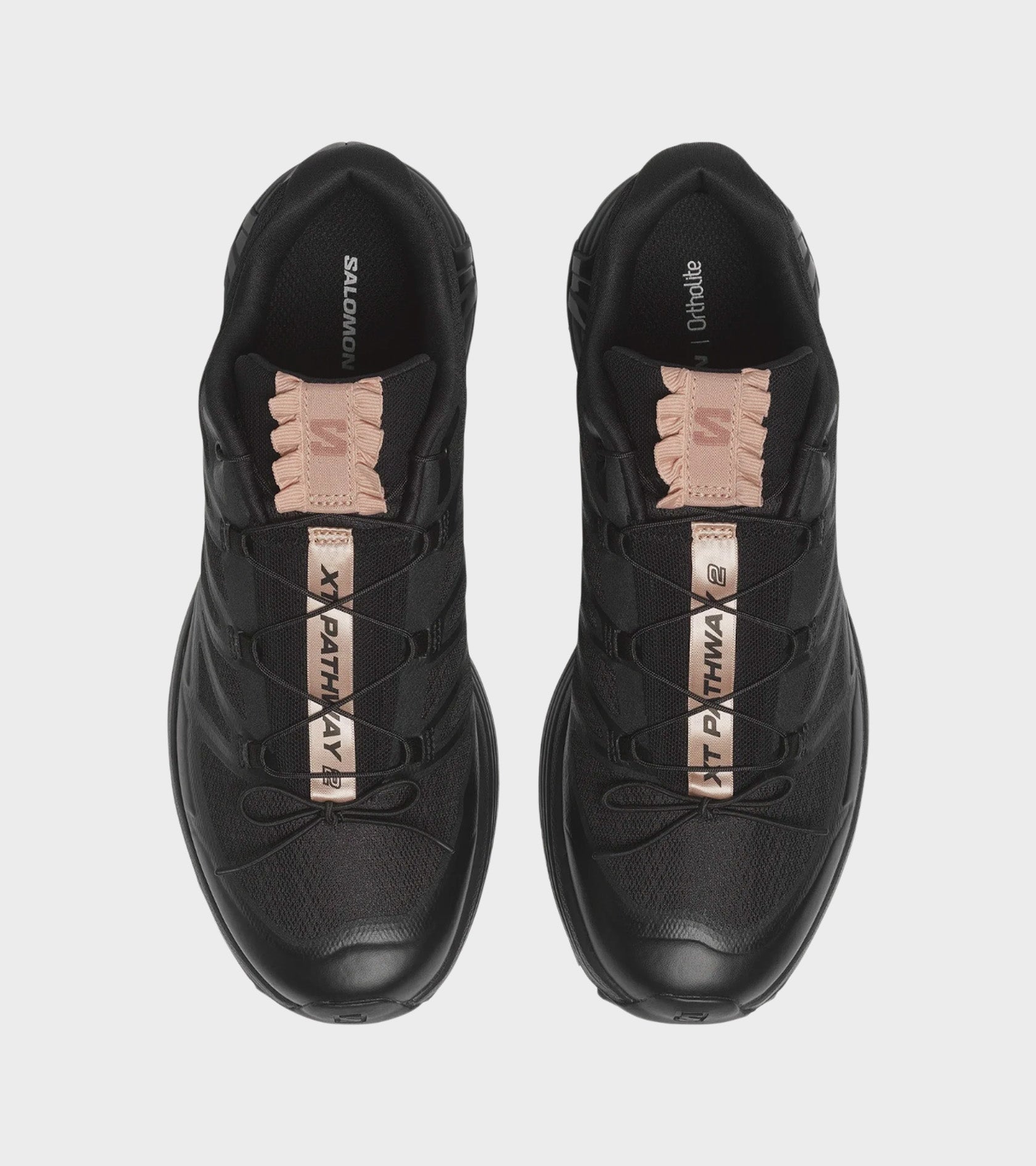 XT-Pathway fra Salomon i en sort version med feminin blonde detalje lyserøde detaljer.