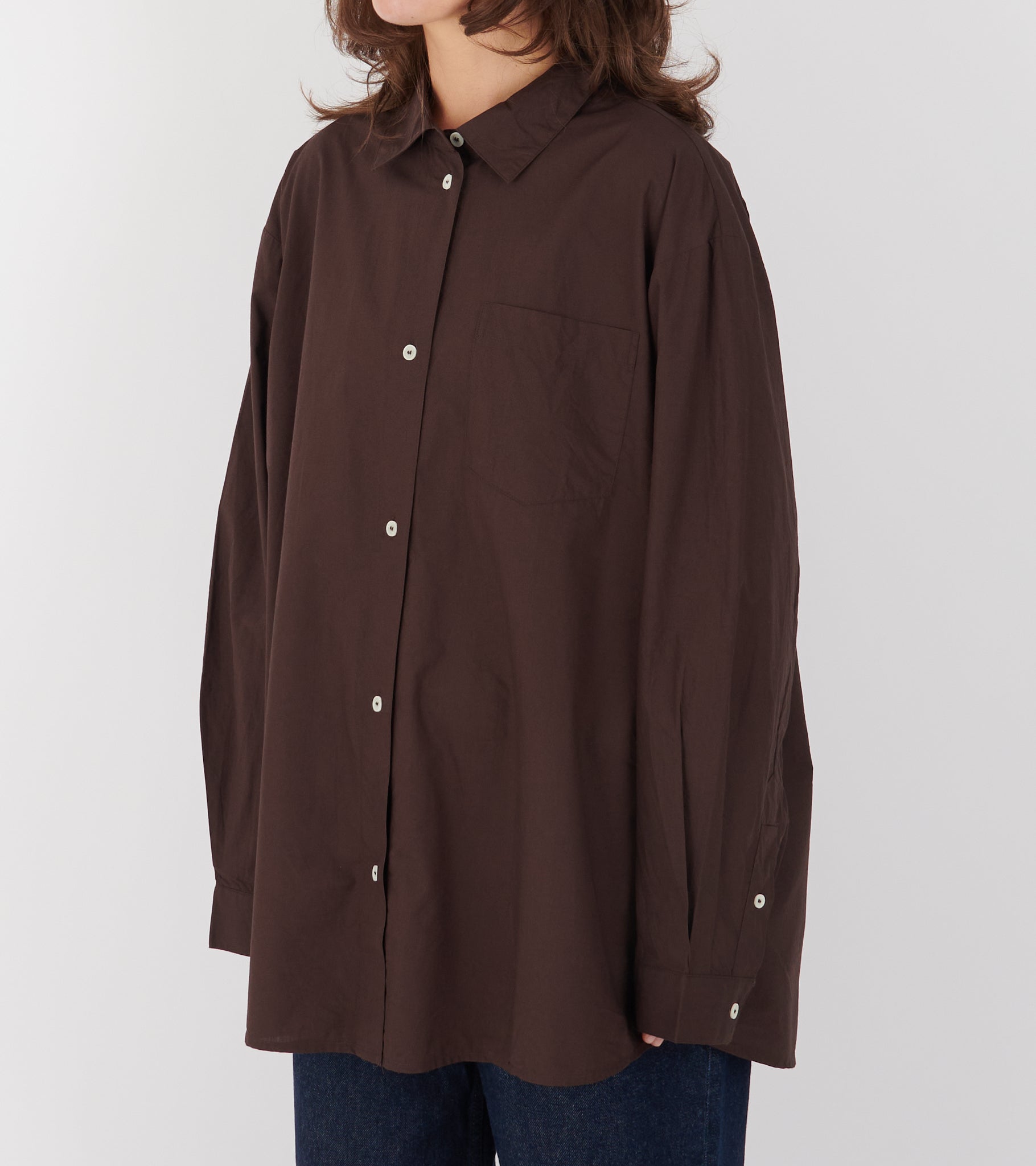Mørkebrun skjorte i økologisk bomuldspoplin fra Skall Studio.