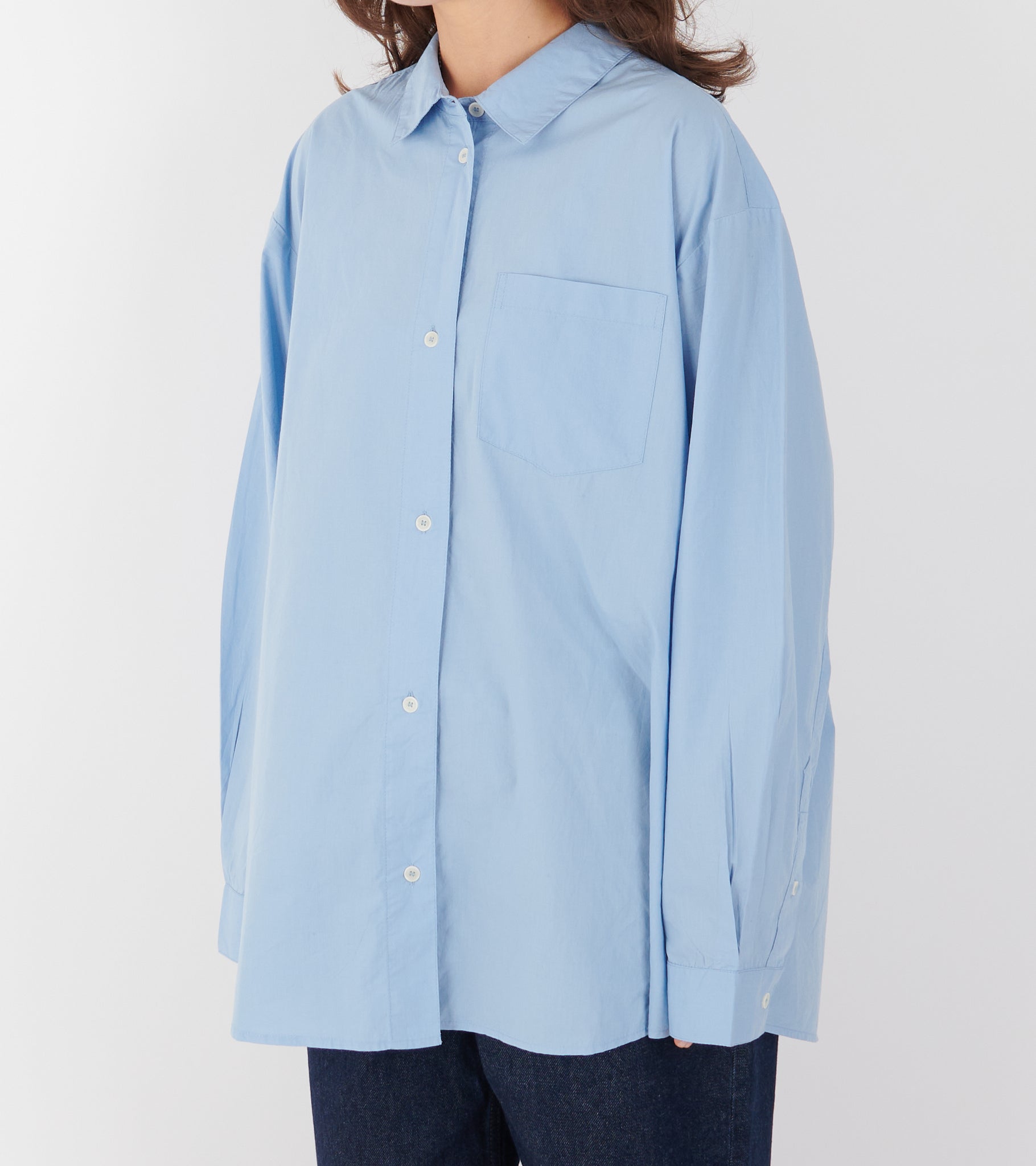 Lyseblå skjorte i økologisk bomuldspoplin fra Skall Studio.