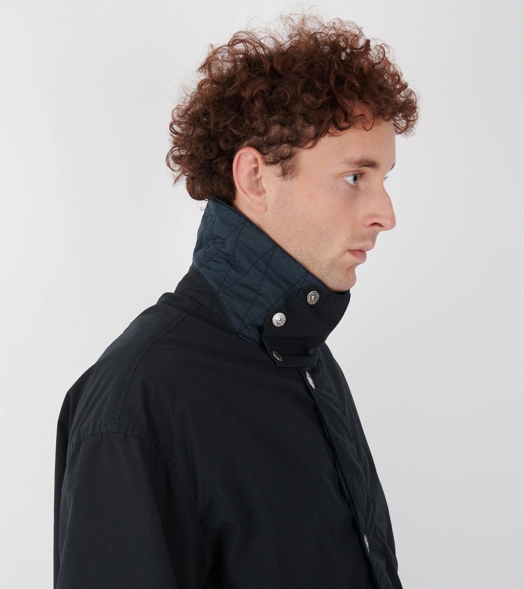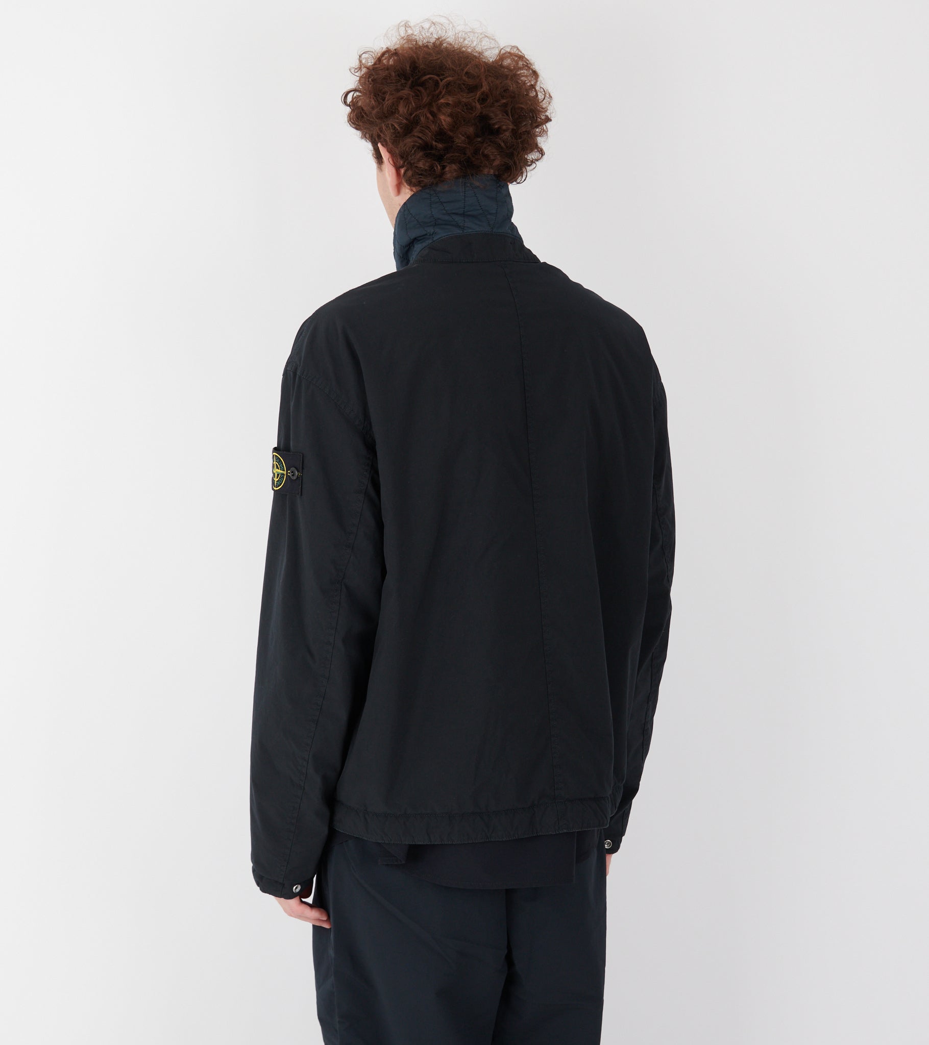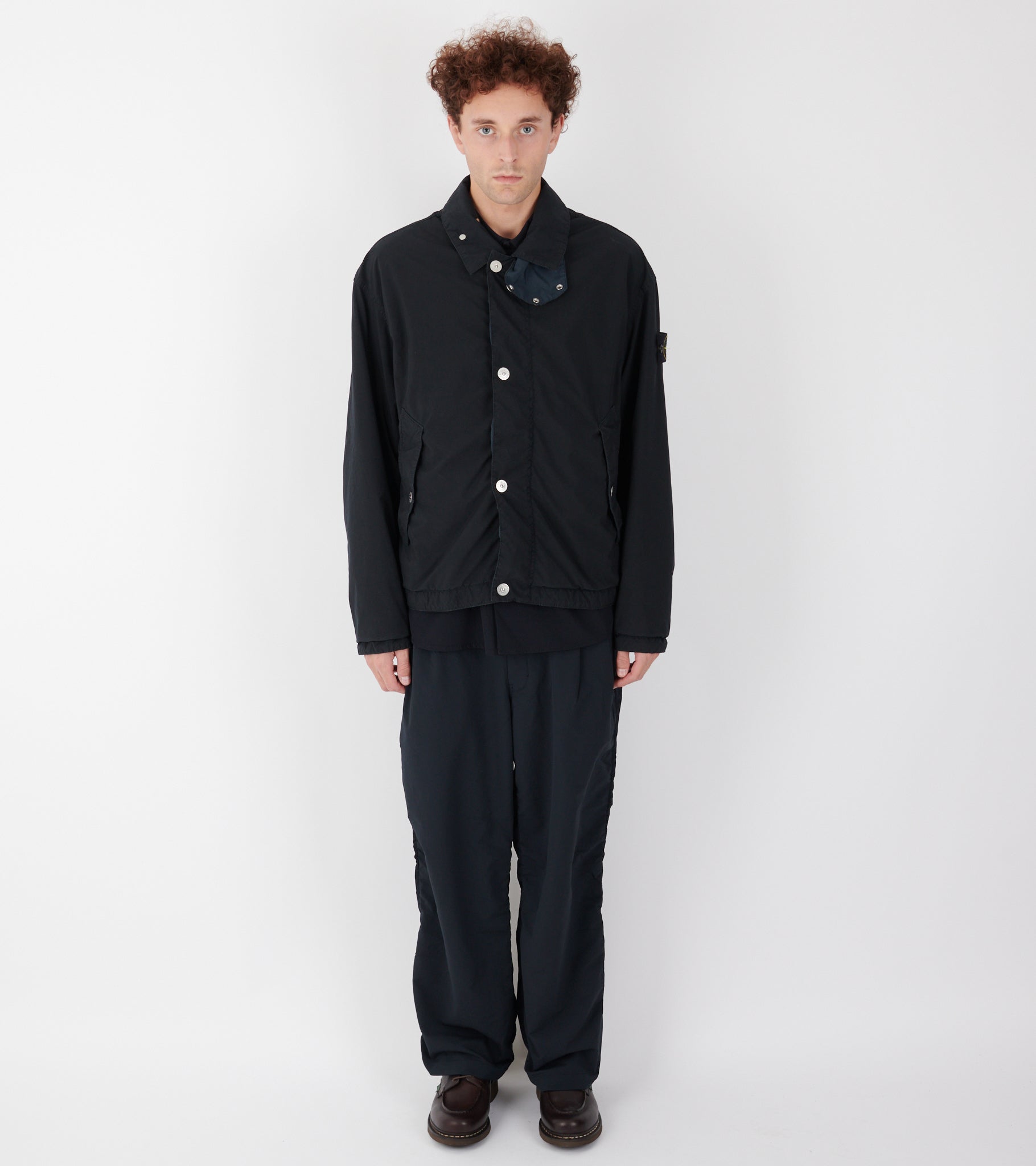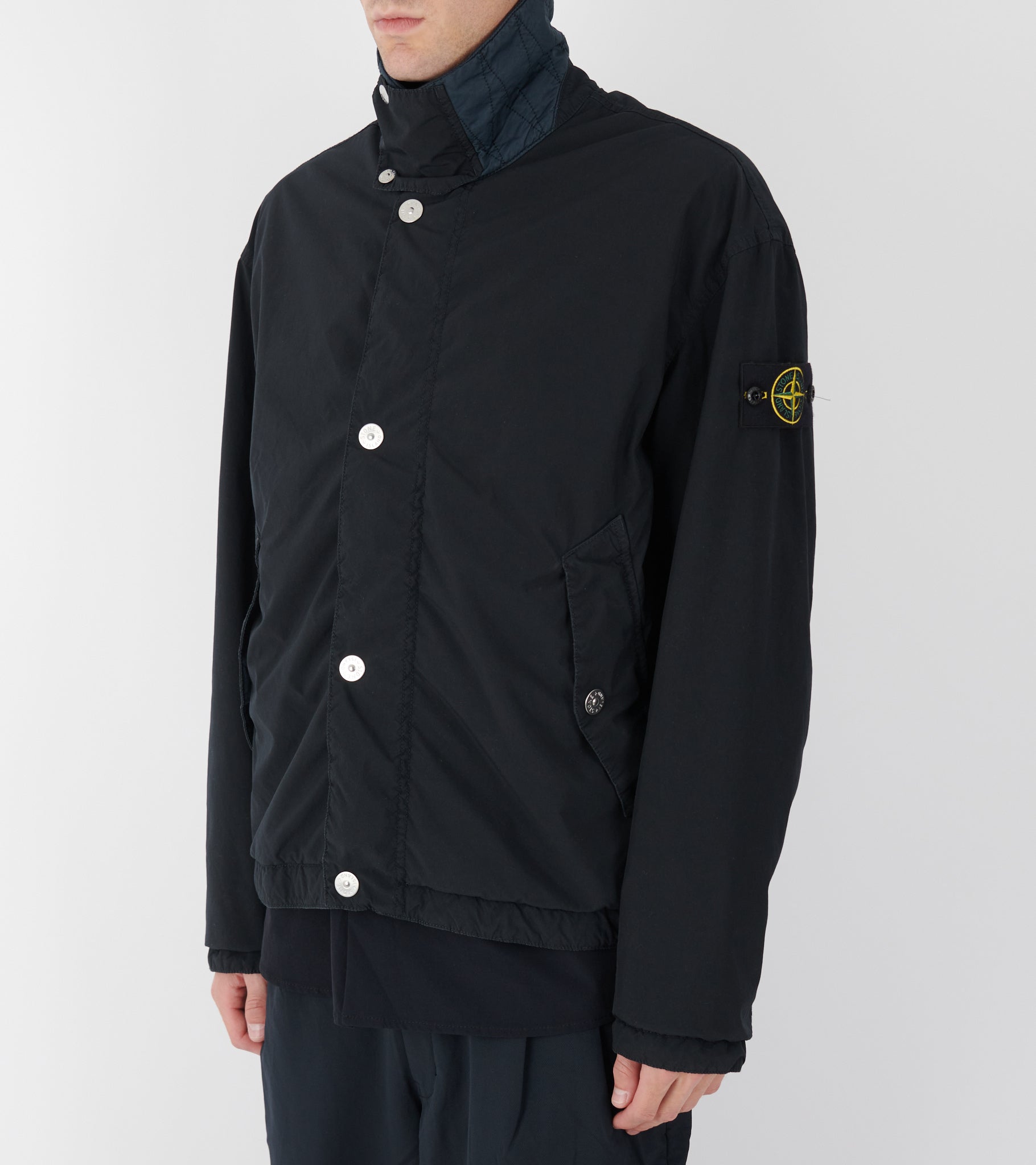 Mørk navy jakke fra Stone Island. Jakken har en klassisk krave, en skjult dobbeltgående lynlåslukning, en trykknaplukning med sølv logo-knapper samt to lommer på fronten. Jakken er foret og har en storm-flap øverst ved kraven, så den kan lukkes helt op i halsen. På venstre ærme er det ikoniske Stone Patch.