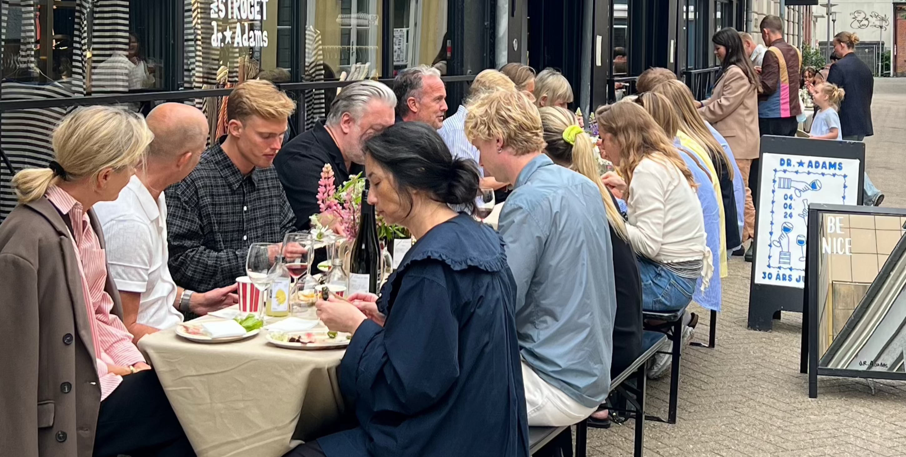 D. 4 juni kunne dr. Adams fejre 30 års jubilæum. Det blev i den grad fejret med alle ansatte, samarbejdspartnere og venner af huset. Det var en fantastisk dag med langbordsmiddag, collab med Nørgaard Paa Strøget og Sunflower samt lancering af Team Adams' helt egen 'Fyn Guide'. Gårdhaven var åben og humøret var i top.