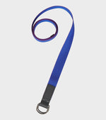 Sort bælte fra Comme des Garcons Homme. Dette bælte er fremstillet i en kraftig nylon kvalitet og har røde syninger langs kanten. Bæltet har en spænde i sort metal med en detalje i sort kalveskind. I den ene ende er et hvidt logo. Bæltet er produceret i Japan og er one size.