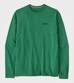 Navy langærmet t-shirt fra Patagonia. Denne t-shirt er fremstillet i en blanding af genanvendt bomuld og genanvendt polyester. Den har logoprint ved venstre bryst samt bagpå ryggen.