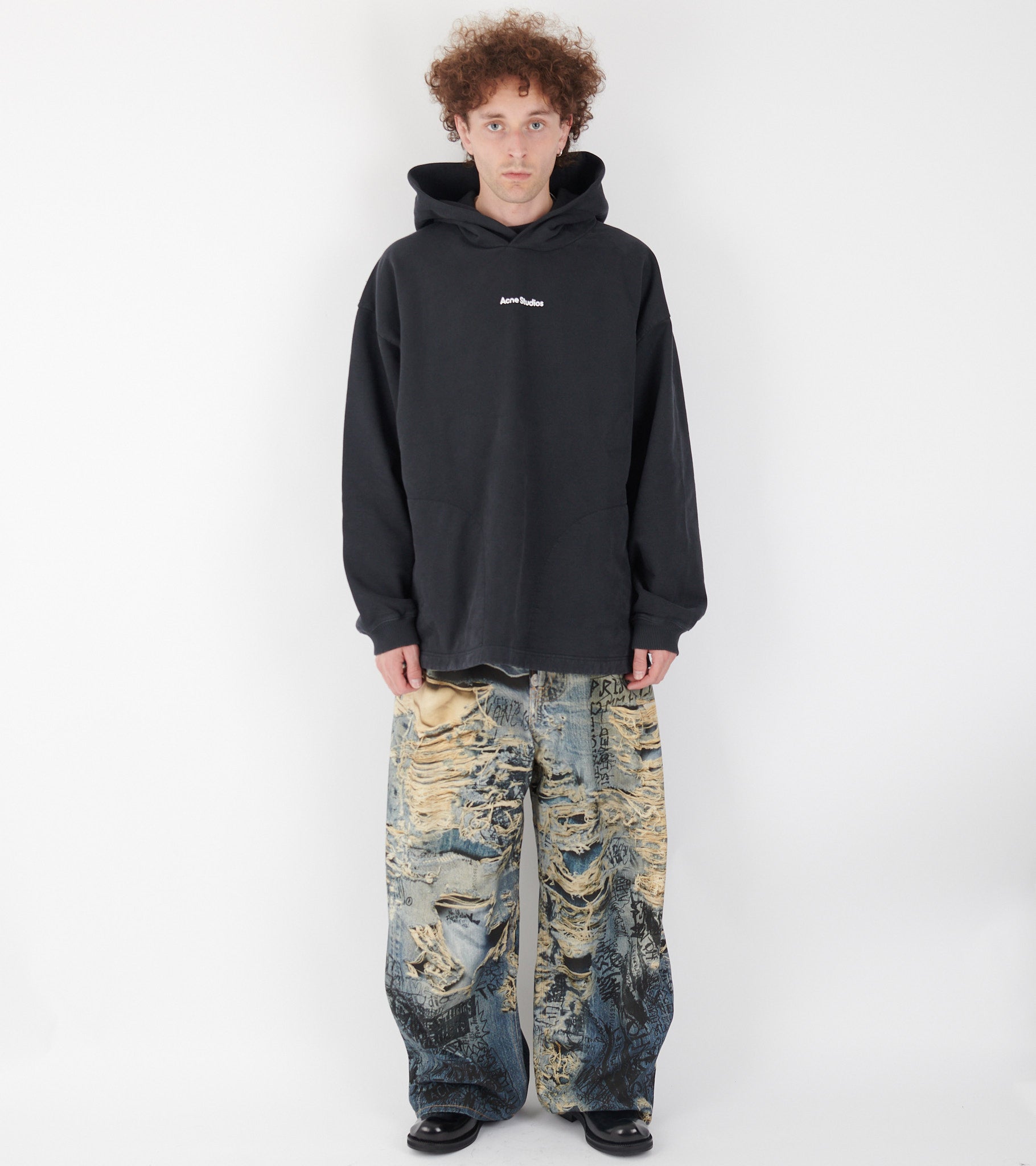 Sort hættetrøje med et hvidt printet logo på fronten fra Acne Studios.