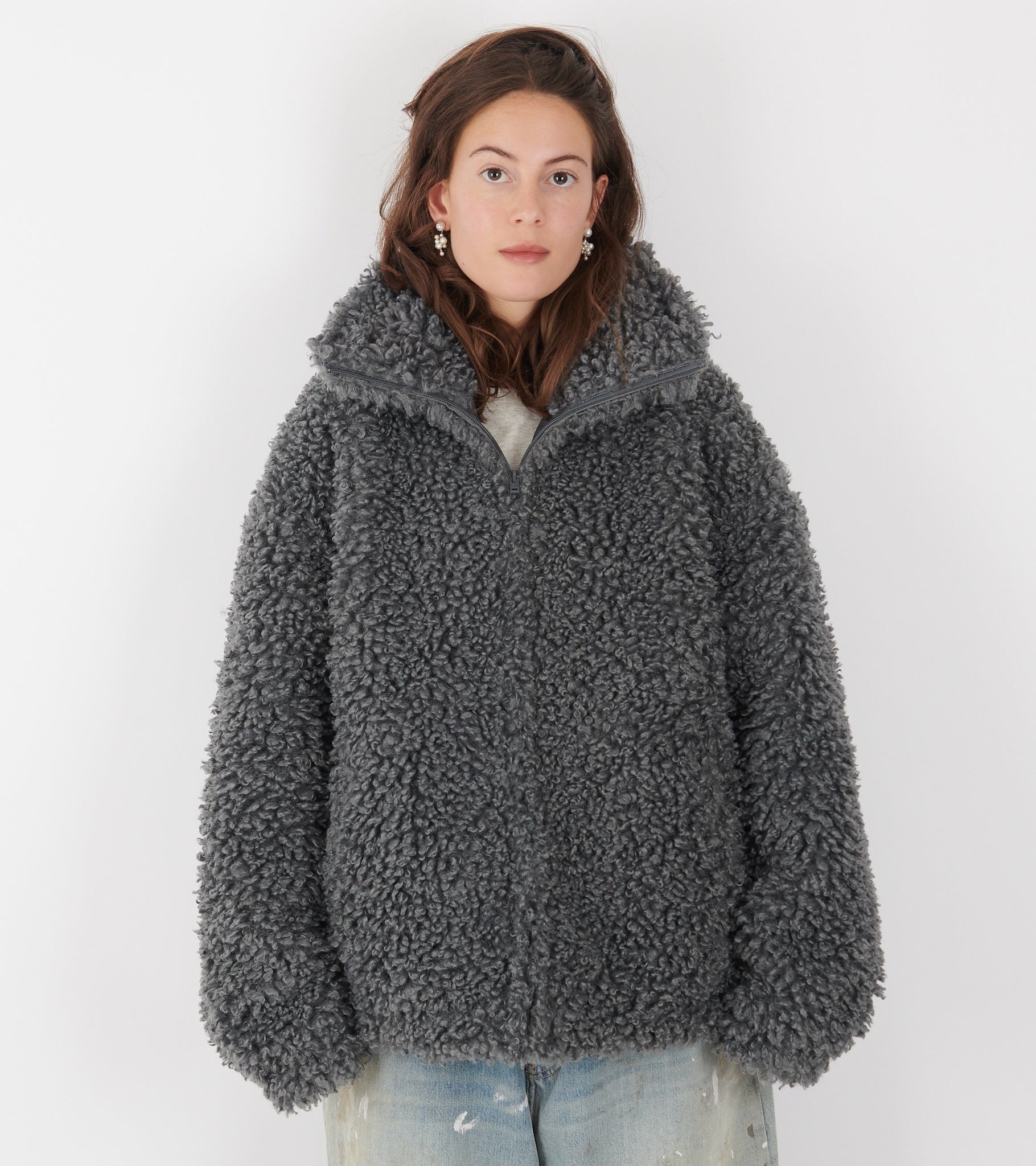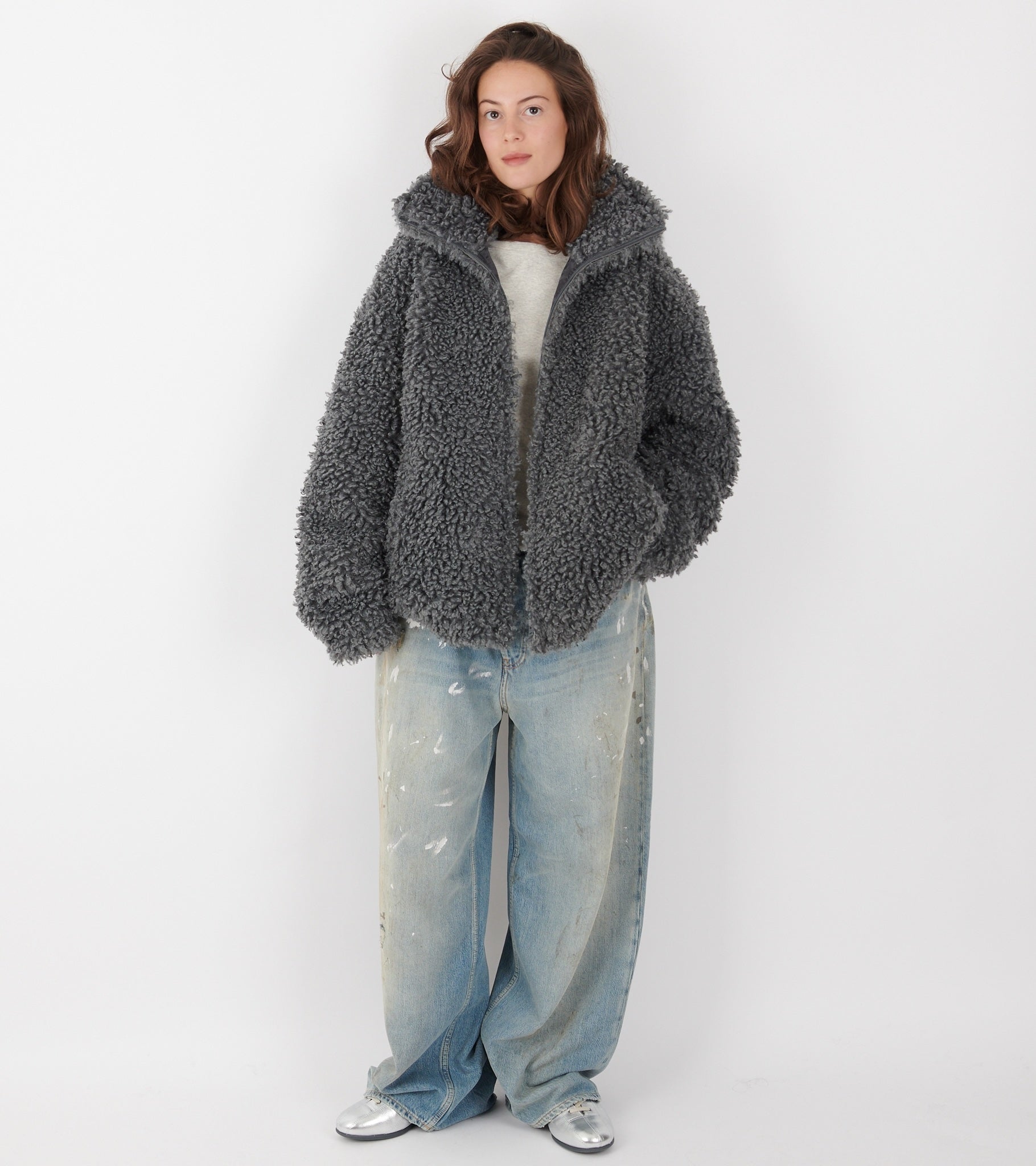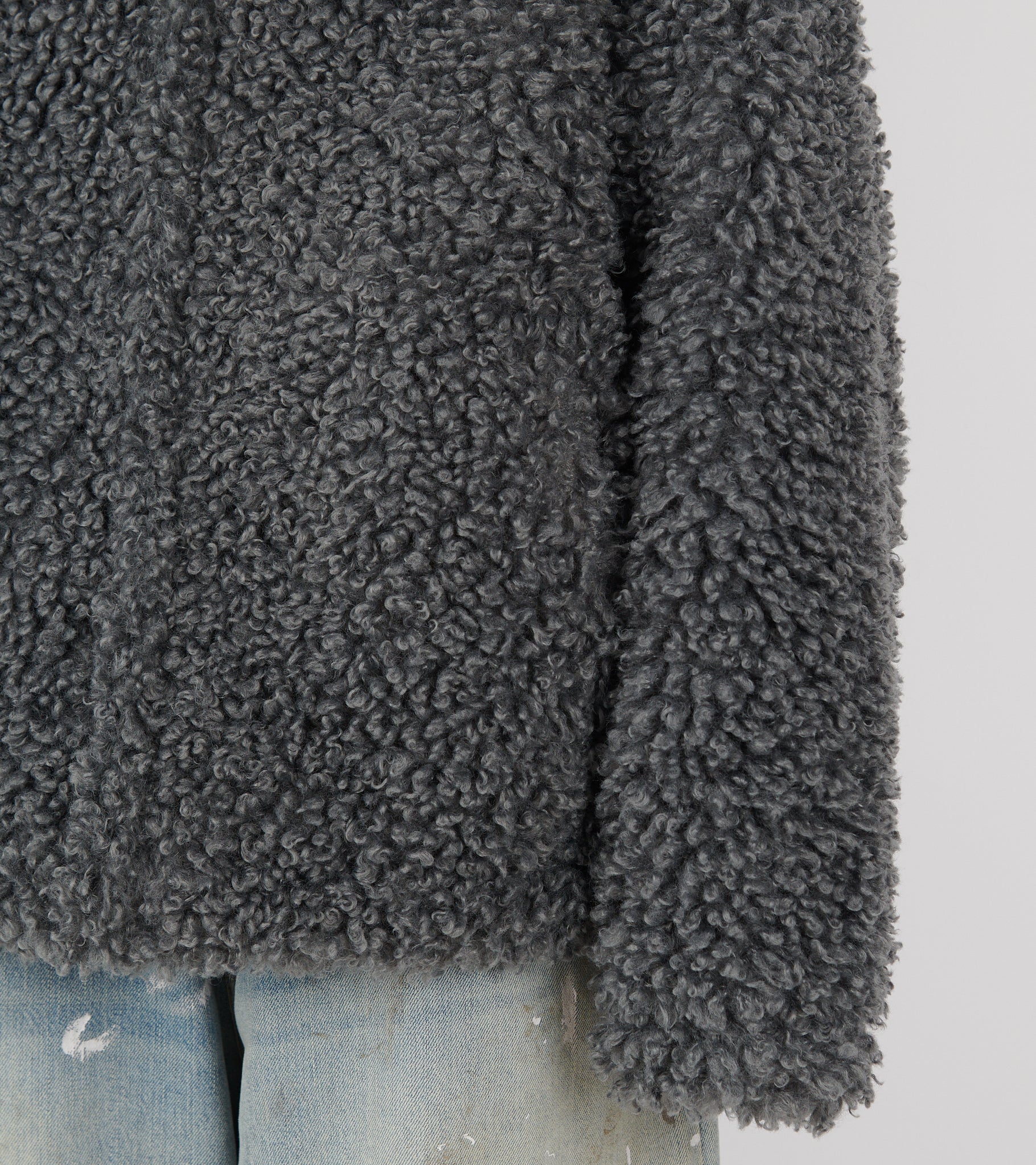Mørkegrå jakke i krøllet faux fur fra Acne Studios.
