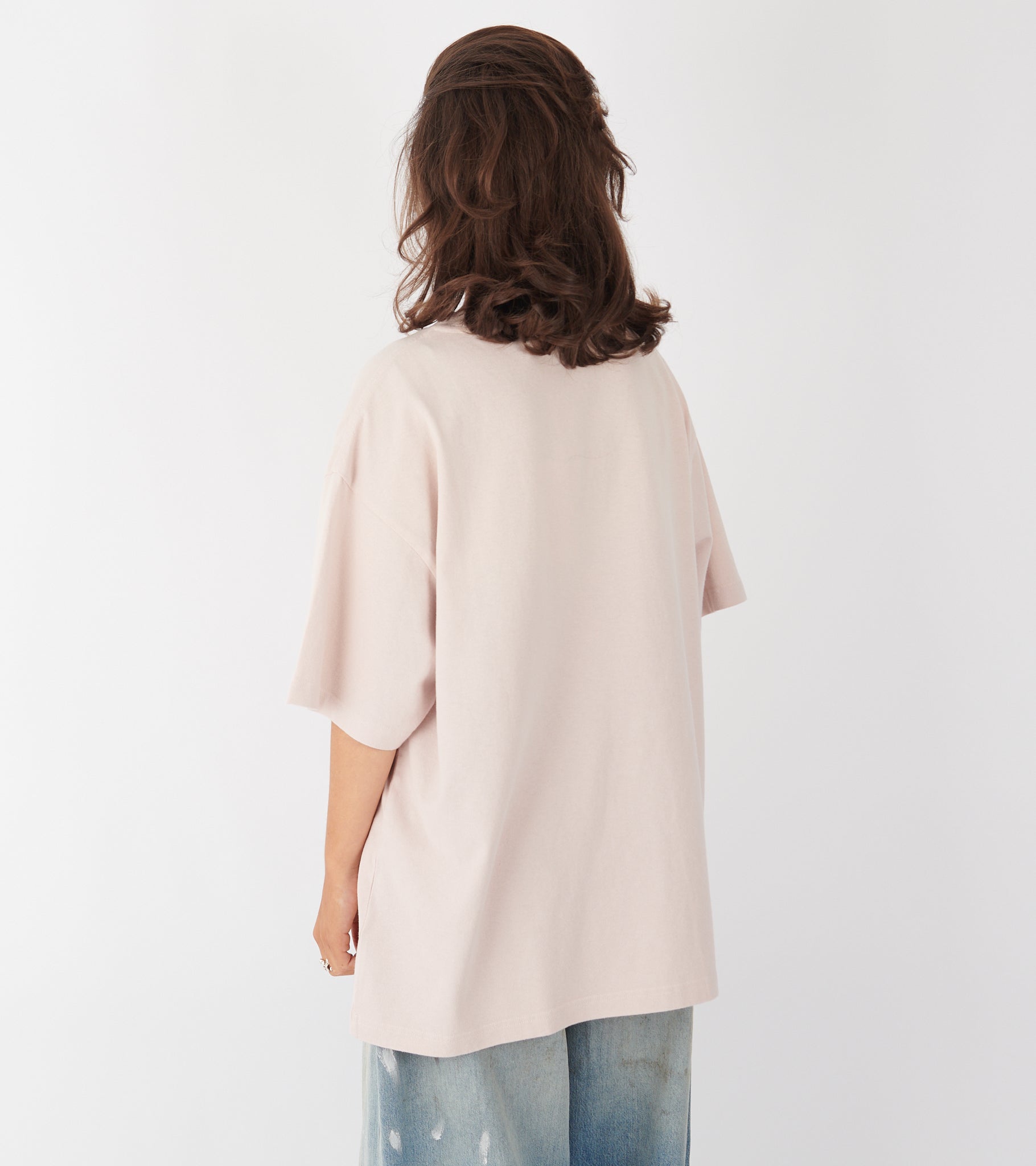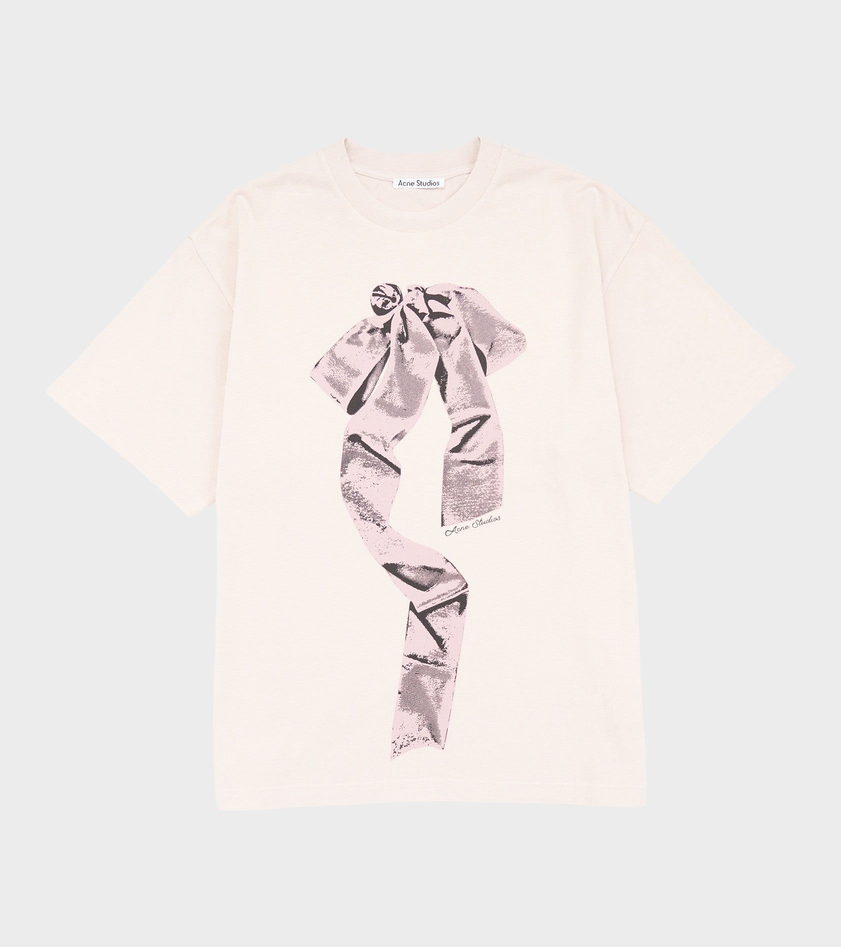 Oversize t-shirt fra Acne Studios. Denne t-shirt er i en sart støvet lyserød/violet nuance og er fremstillet i økologisk bomuld. På fronten er en stor printet sløjfe samt et lille logo.