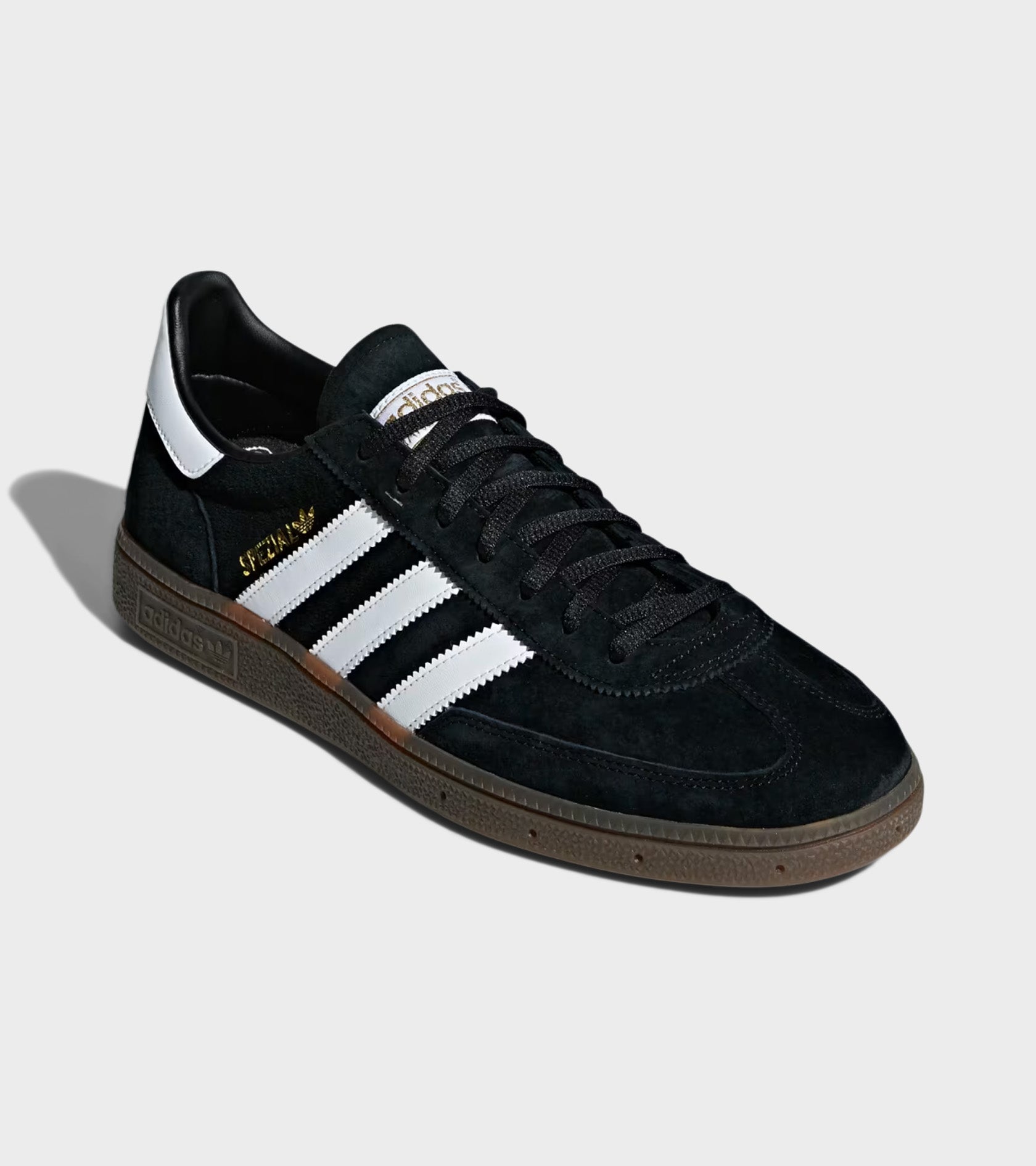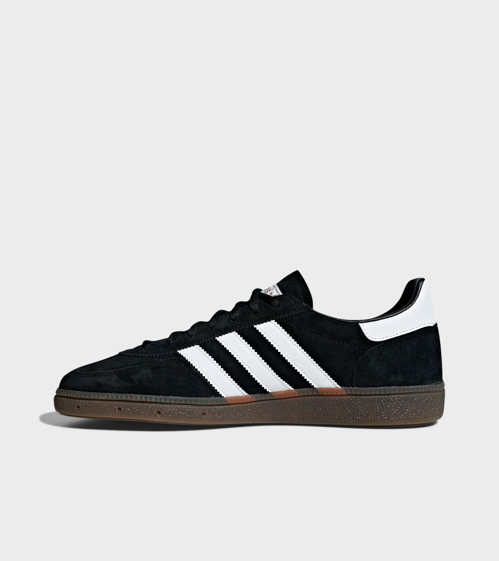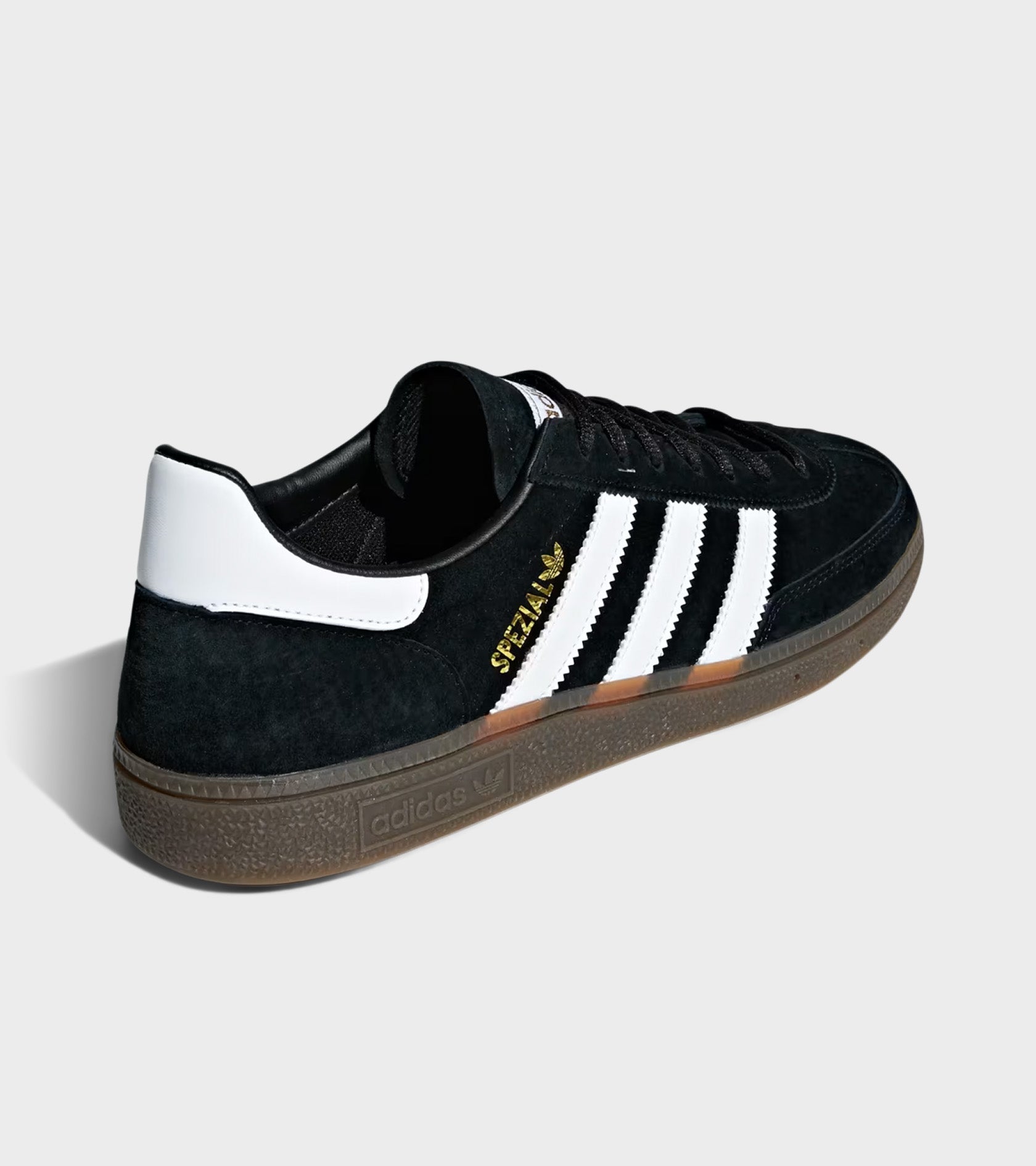 Handball Spezial i sort og hvid fra Adidas. Disse sneakers har en overdel i ruskind samt detaljer i hvidt læder. Skoen har en klassisk snørelukning og et logo på tungen. På siden er de ikoniske striber samt 'Spezial' printet i guld.
