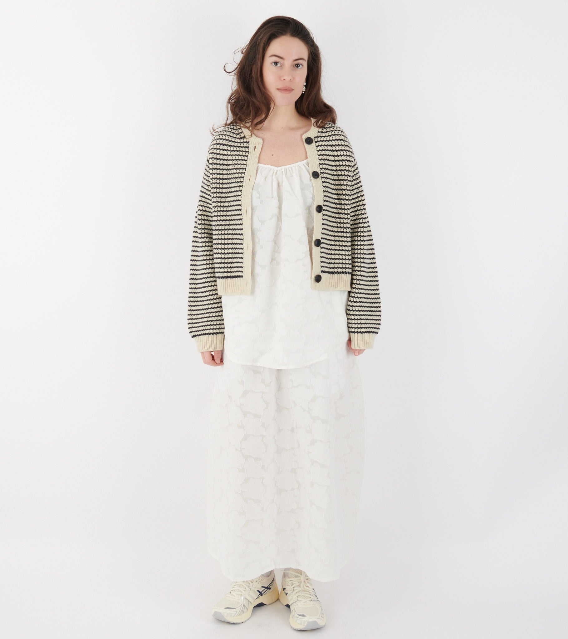 Hvid top i en blomstret jacquard kvalitet fra Aiayu.