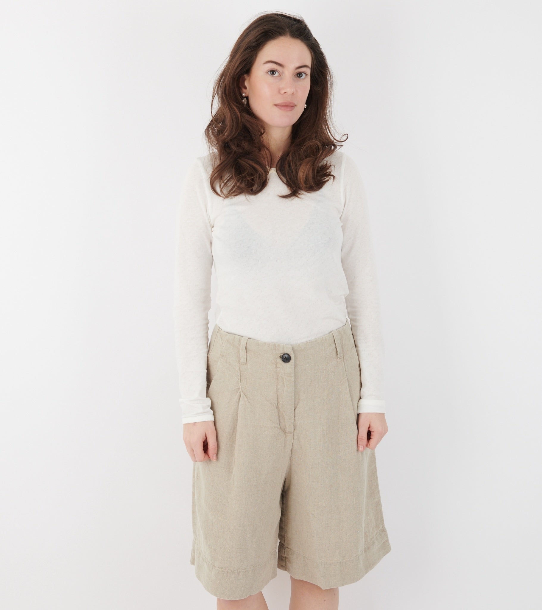 Bermuda-inspirerede shorts i kraftig, ufarvet hør fra Aiayu.