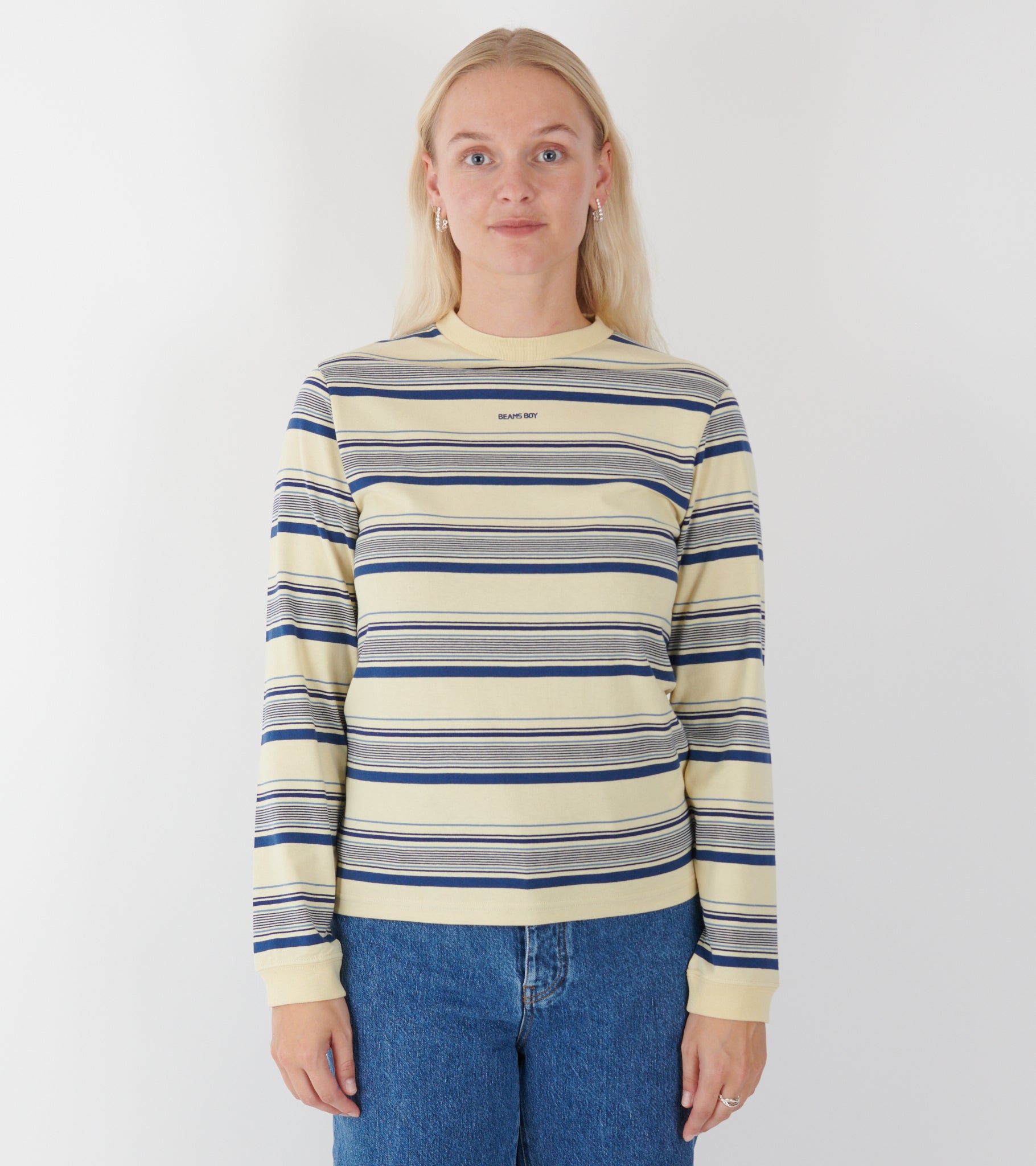 Cremefarvet langærmet t-shirt med blå striber fra Beams Boy.