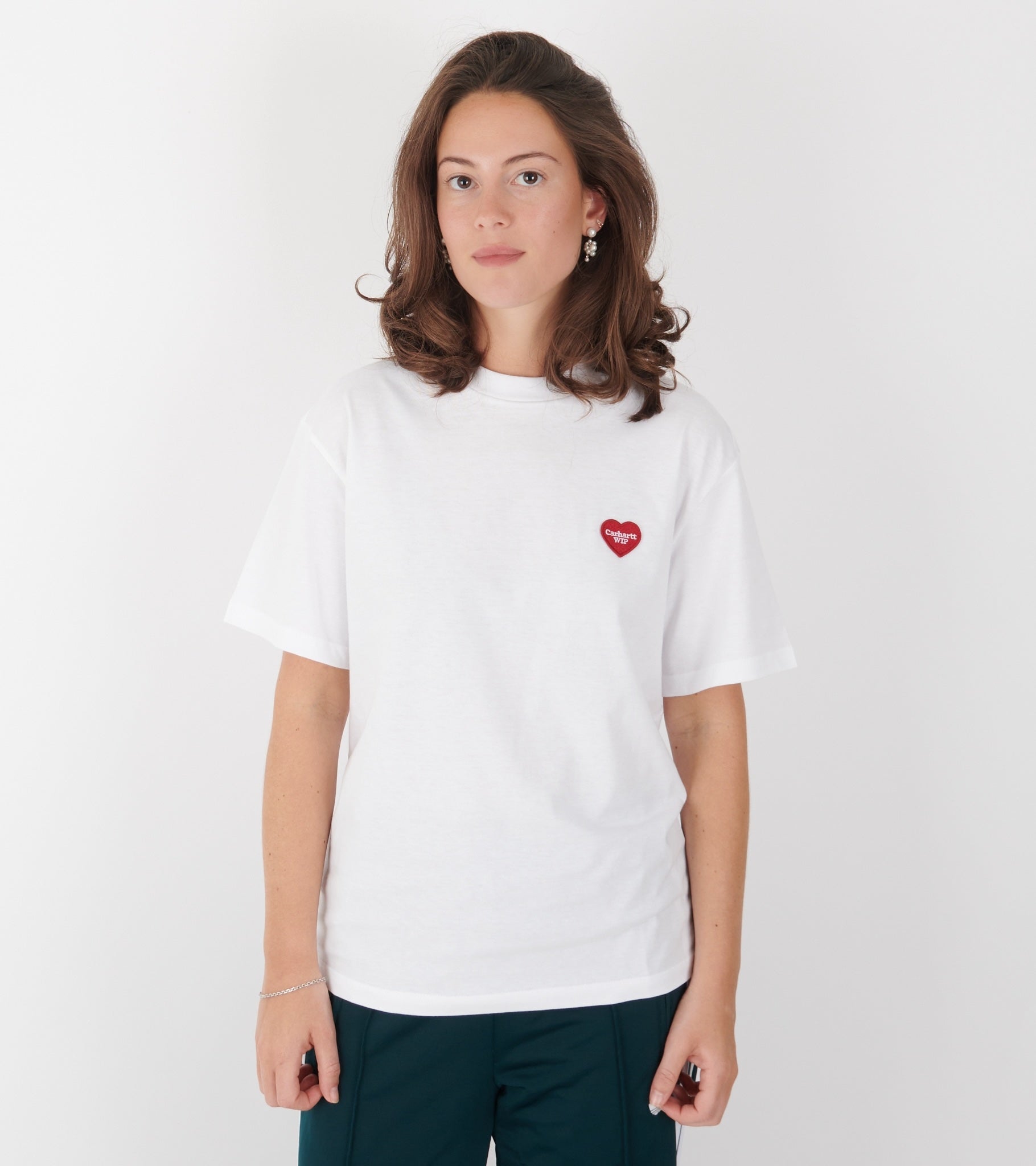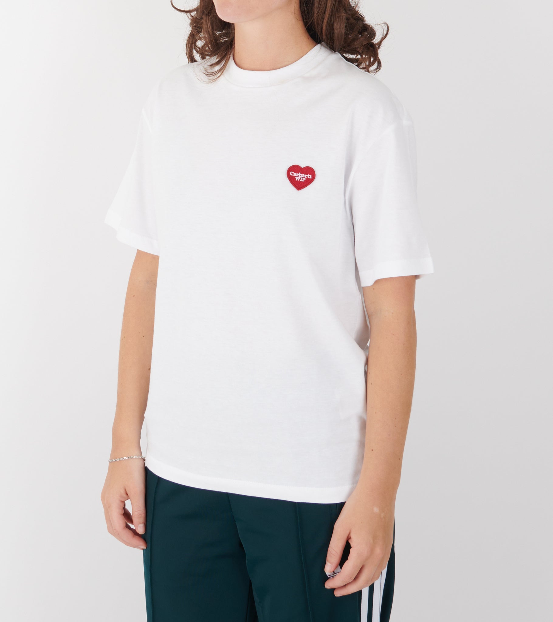 Hvid t-shirt i økologisk bomuld fra Carhartt WIP. S/S Heart Patch T-Shirt har et rødt hjerte med logo broderet ved venstre bryst.