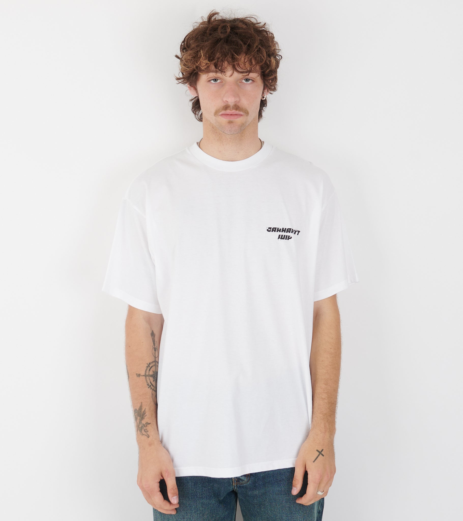 Hvid t-shirt i økologisk bomuld fra Carhartt WIP. T-shirten har logoprint ved venstre bryst samt et stort print bagpå.