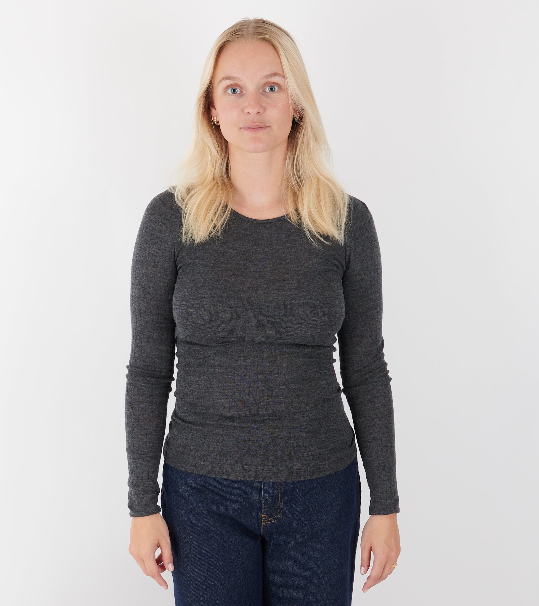 Den ikoniske 101 Rib tee fra Nørgaard Paa Strøget. Kendt for at give "Byens Bedste Bryster". Ribberne er onesize og når du først har købt en, må du eje flere! Et must-have i din garderobe. Denne model er almindelig i længden og produceret i 100% merino uld.