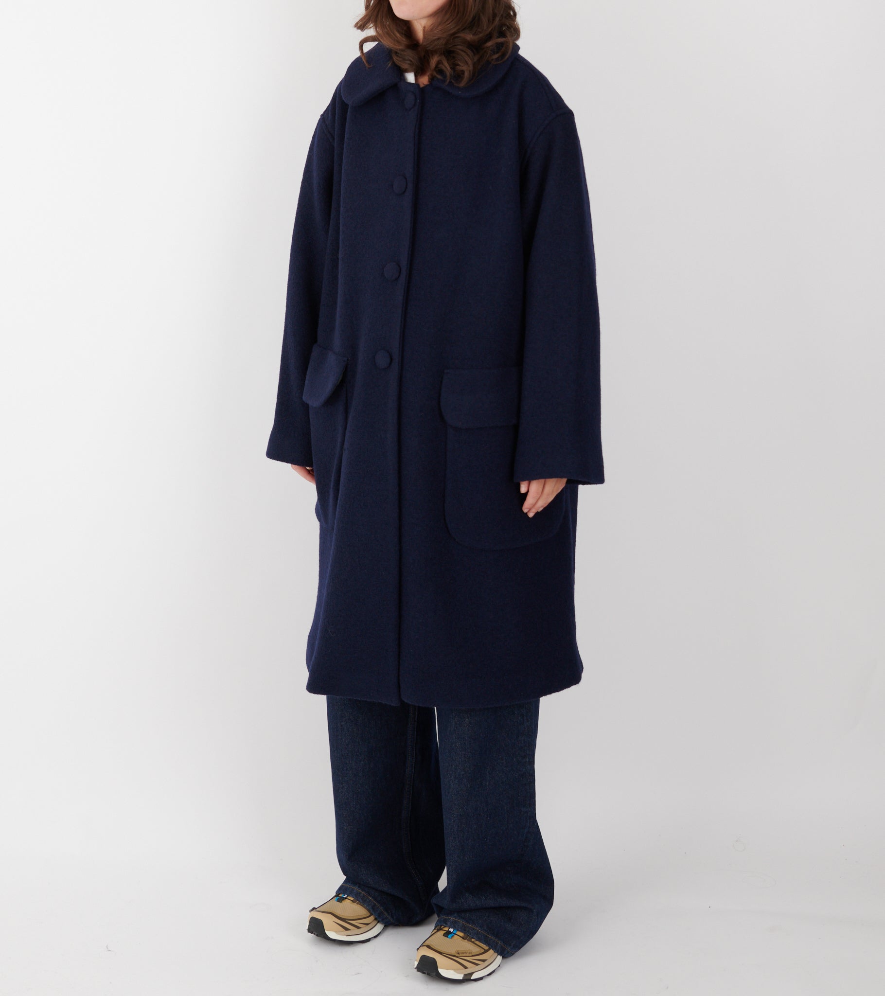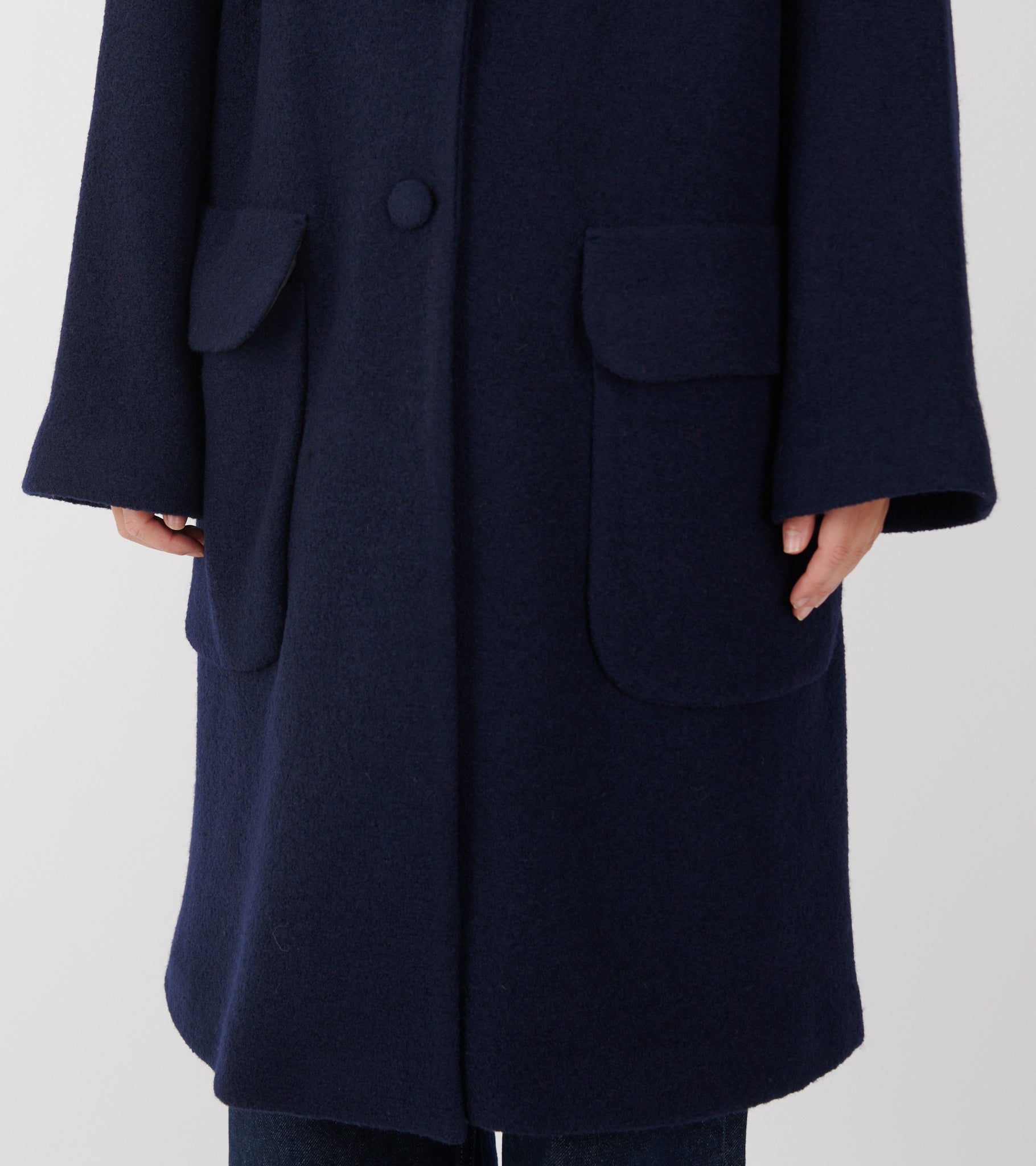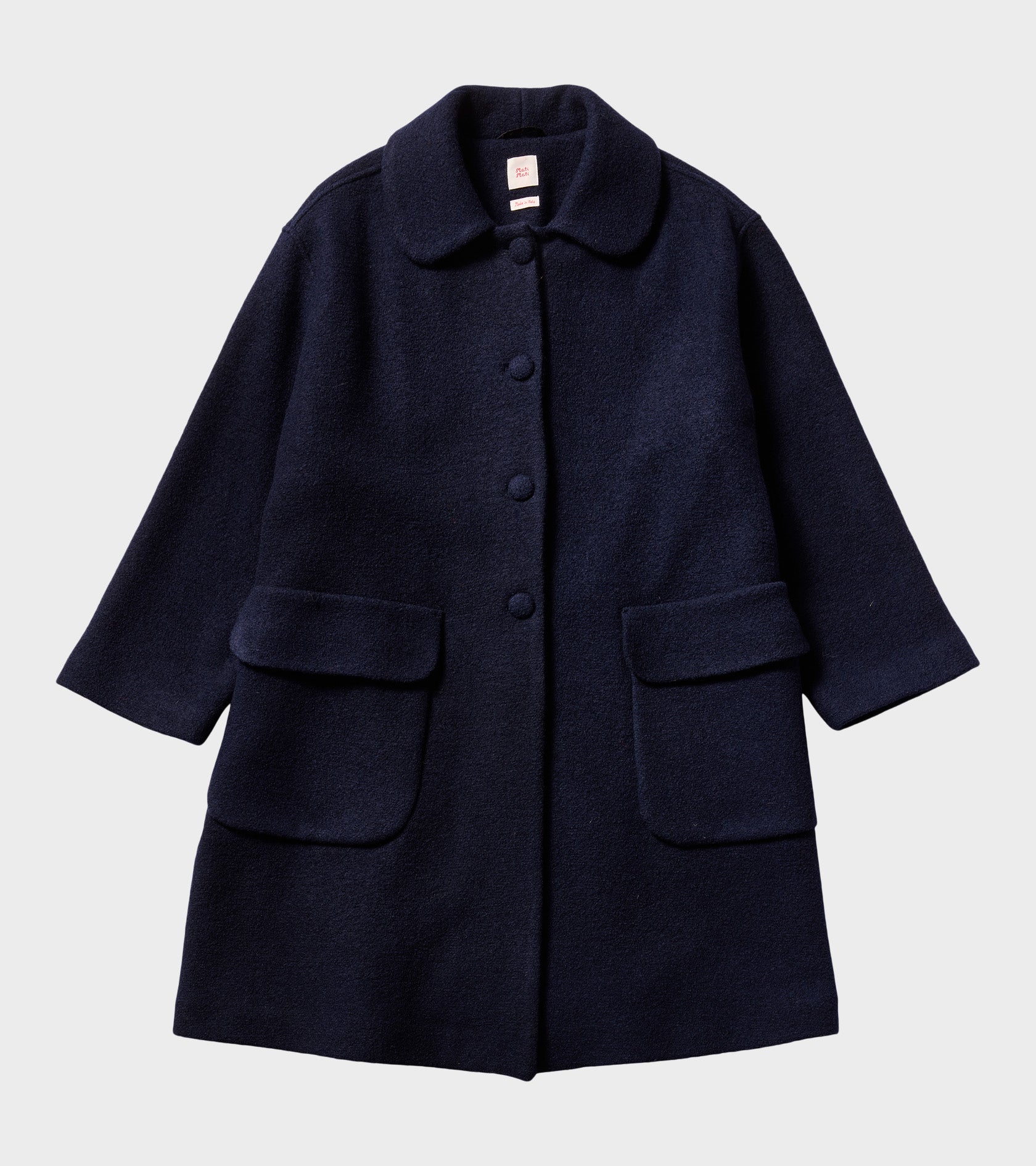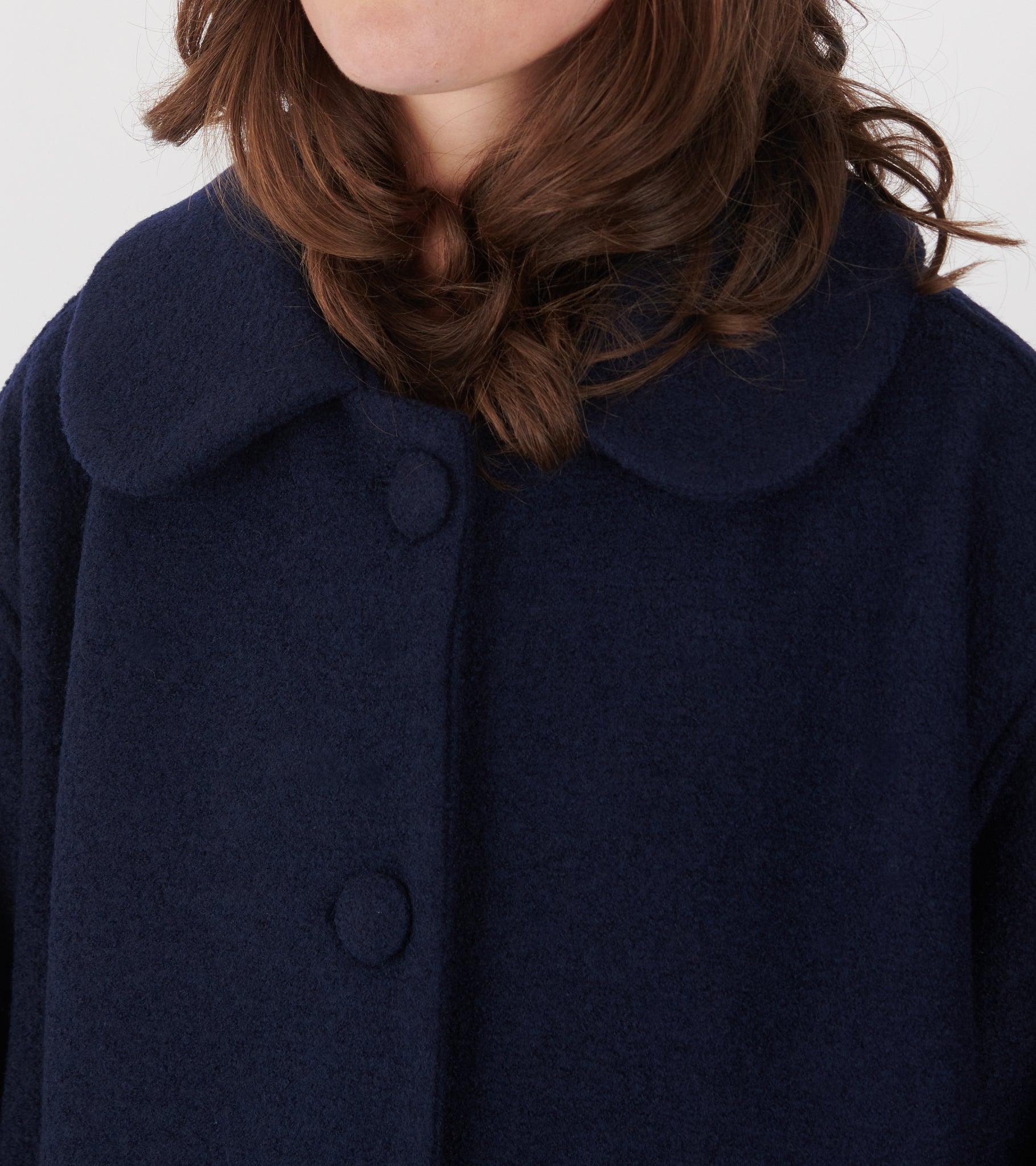 Lang bouclefrakke i mørkeblå fra Mati Mati.