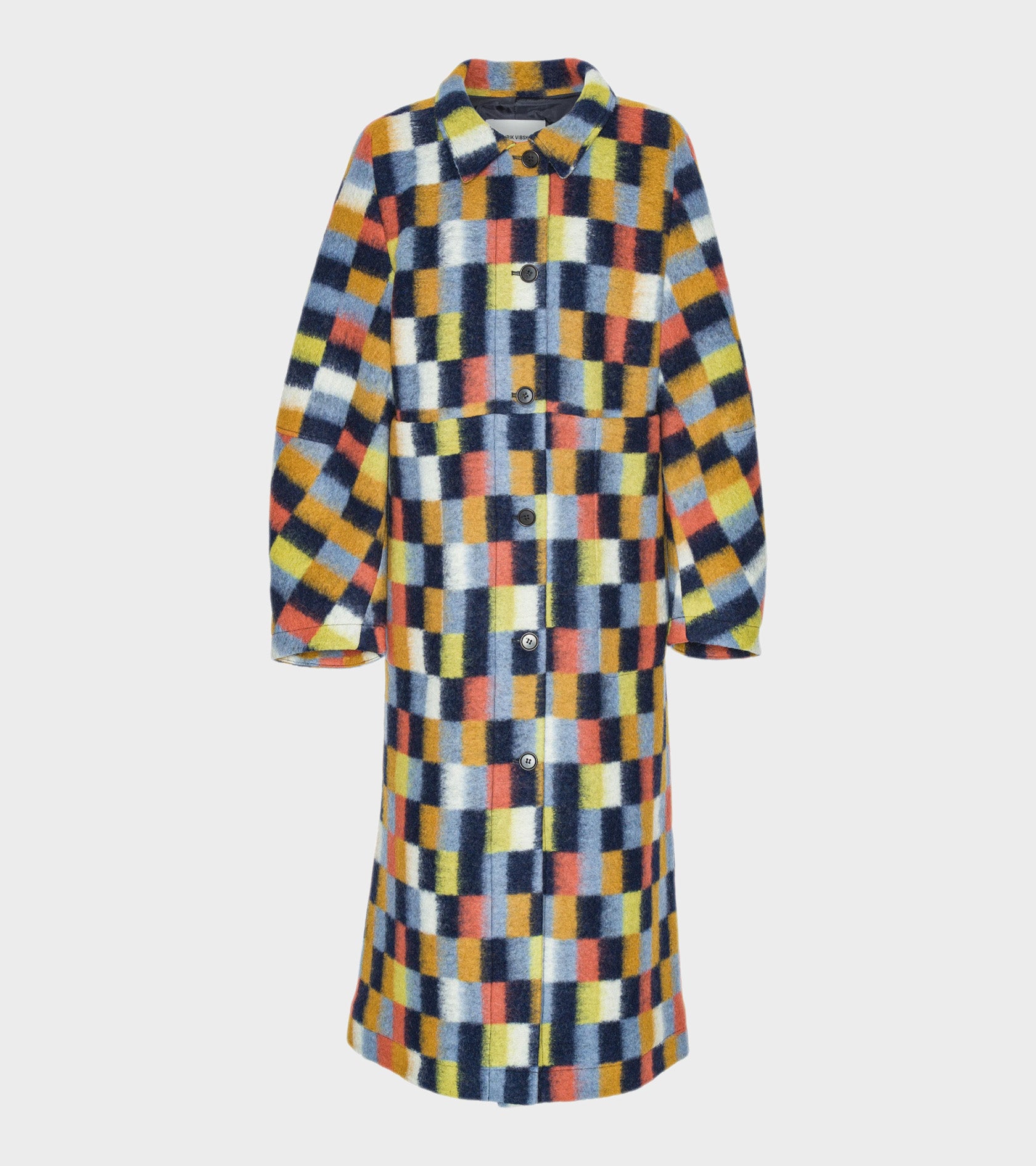Multifarvet frakke i uld fra Henrik Vibskov.