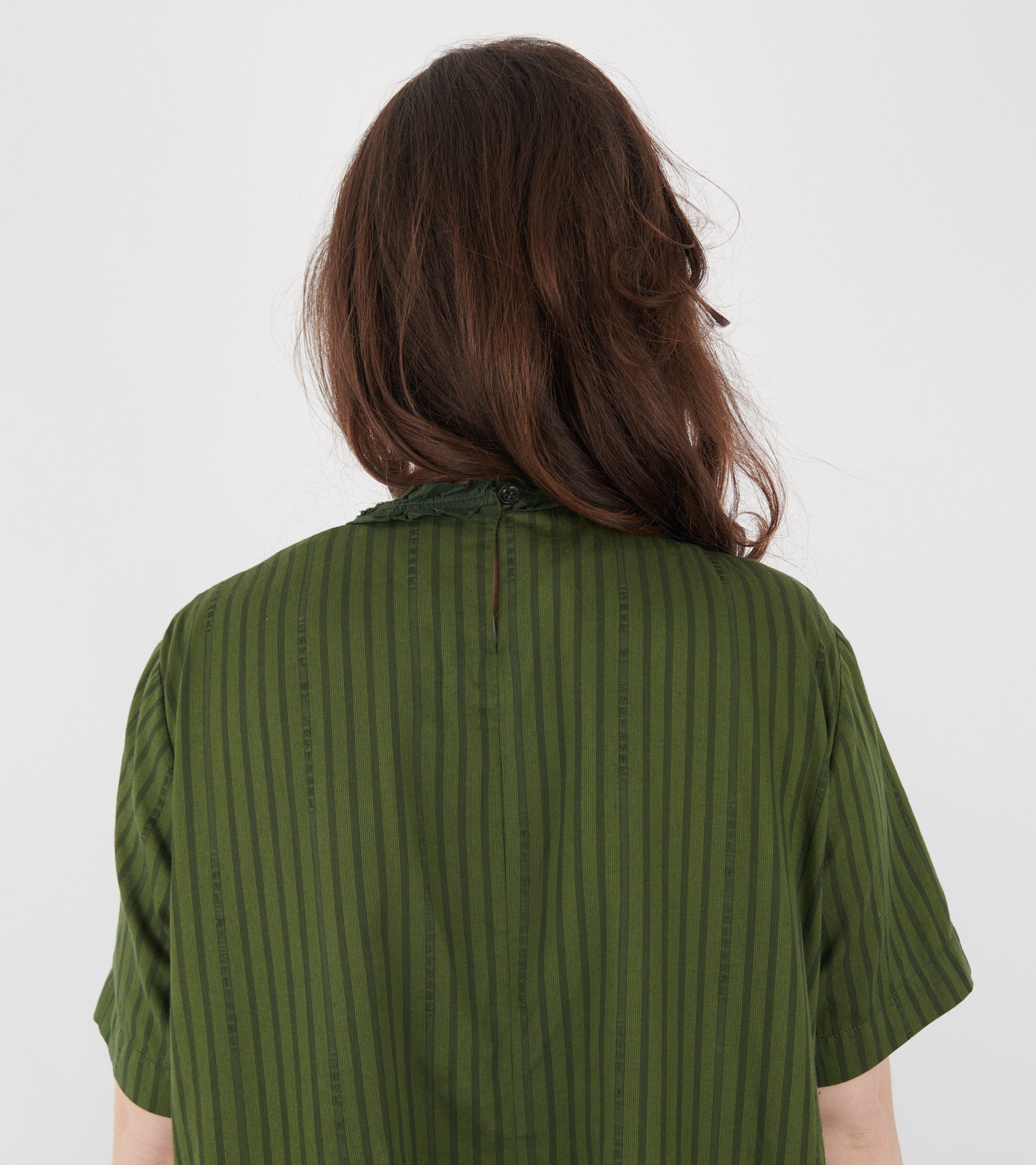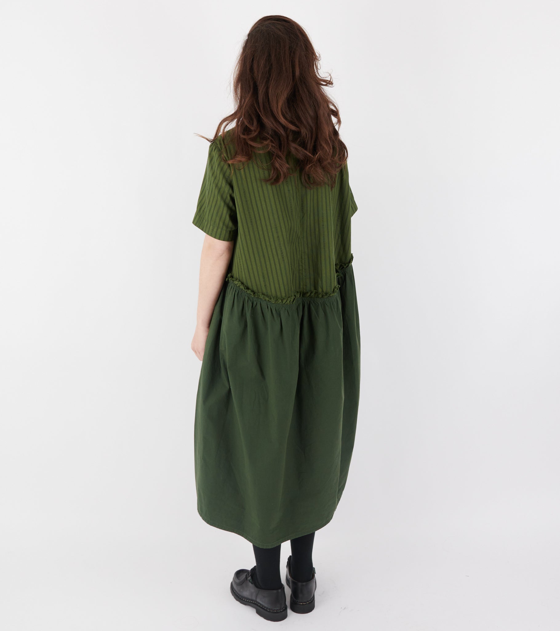 Grøn kjole fra Henrik Vibskov. Bon Chalant Dress har korte ærmer, en rund hals og er detaljeret med plisseringer, flæser samt bindebåndsdetaljer.