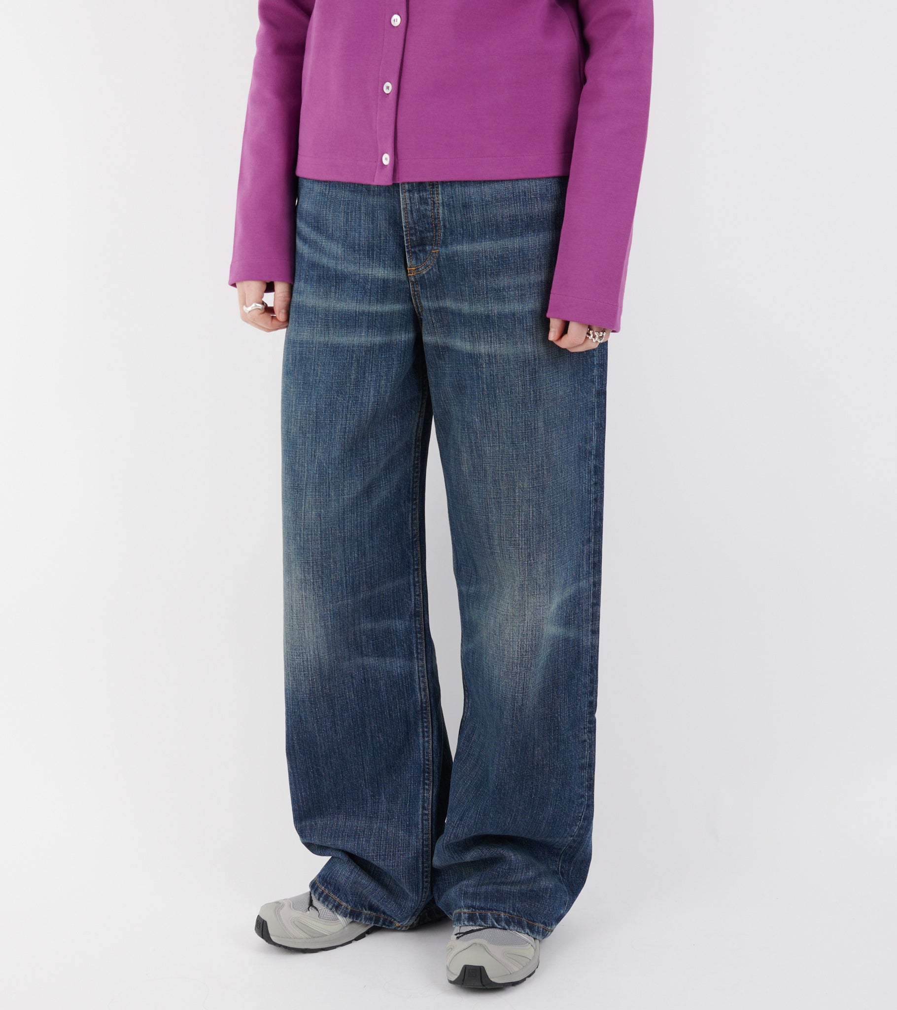 Mørkeblå jeans fra Jeanerica. Belem jeans har en mellemhøj talje, fem lommer og brede lige ben.